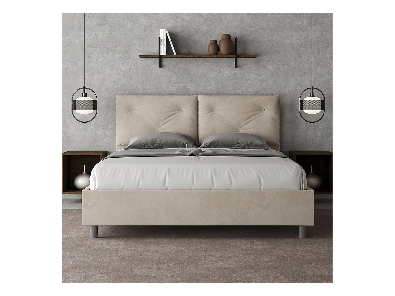 Letto senza rete imbottito 160x190 microfibra sabbia Appia
