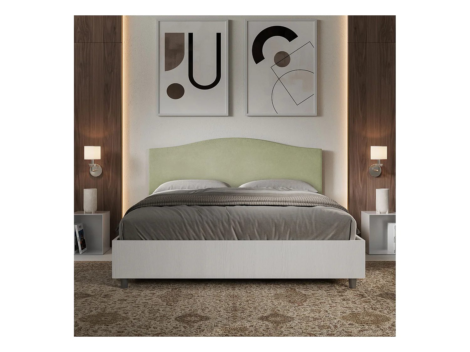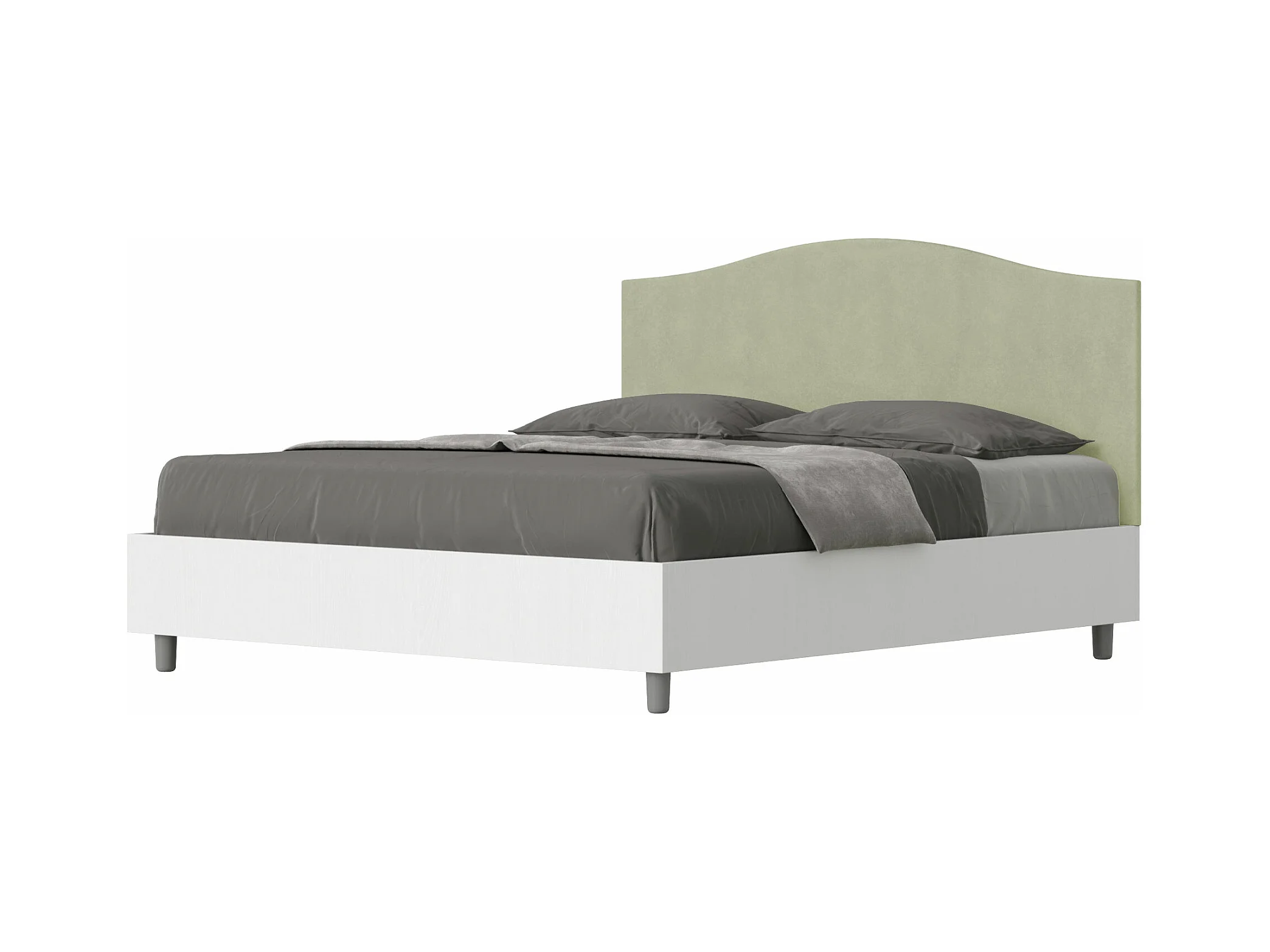 Letto senza rete 160x190 struttura bianco frassino testata Nobilitato/Microfibra tè verde Grace