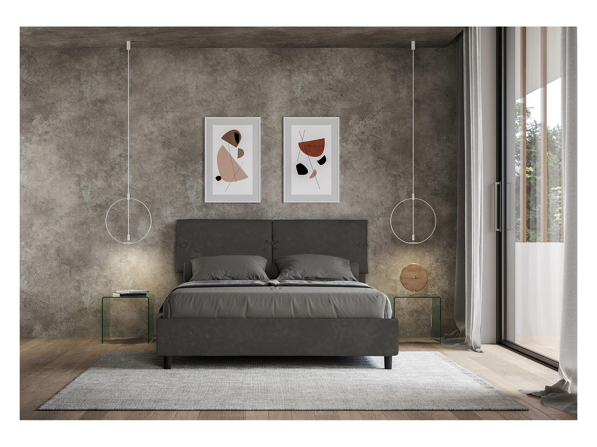 Letto con rete imbottito 160x190 microfibra grigio Sleeper
