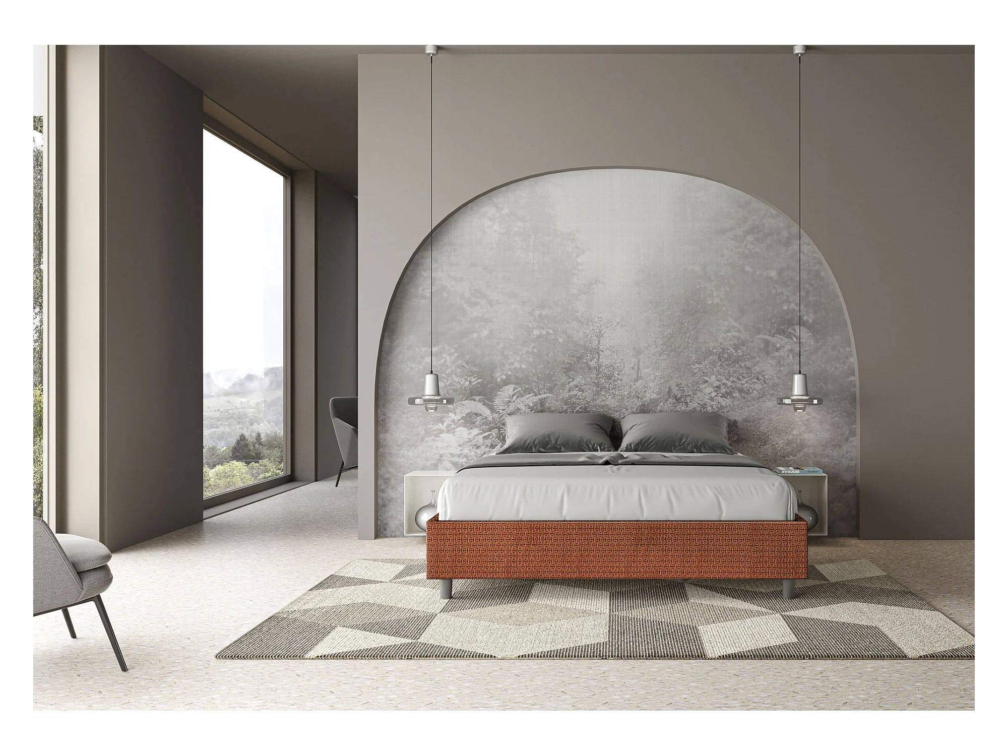 Letto Sommier senza rete imbottito 160x190 tessuto Labirinto 04 arancio Azelia