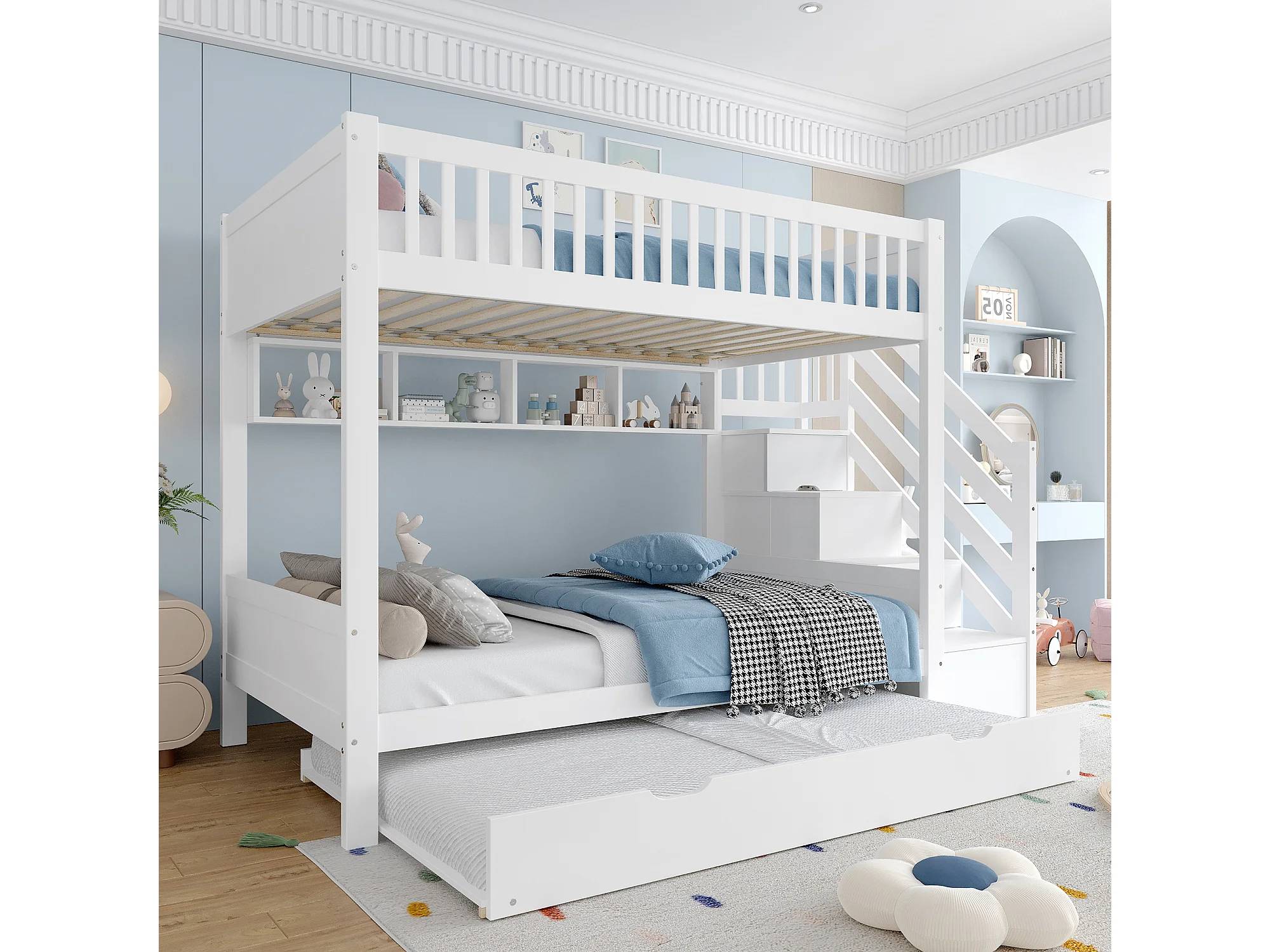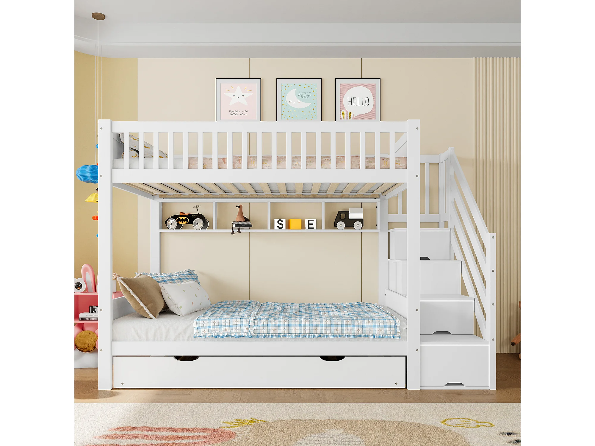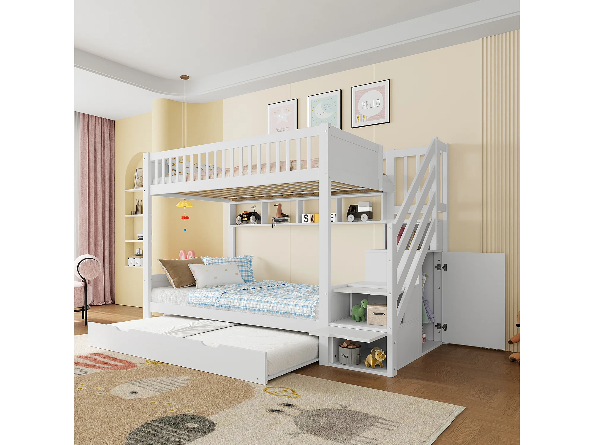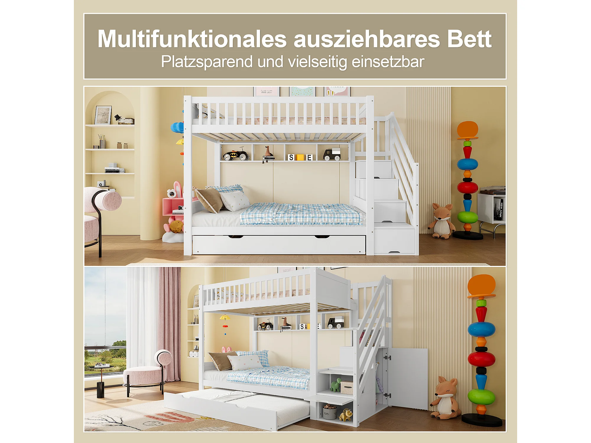 Lit superposé 90x200 bois avec armoire tiroir lit gigogne enfants/adolescents blanc
