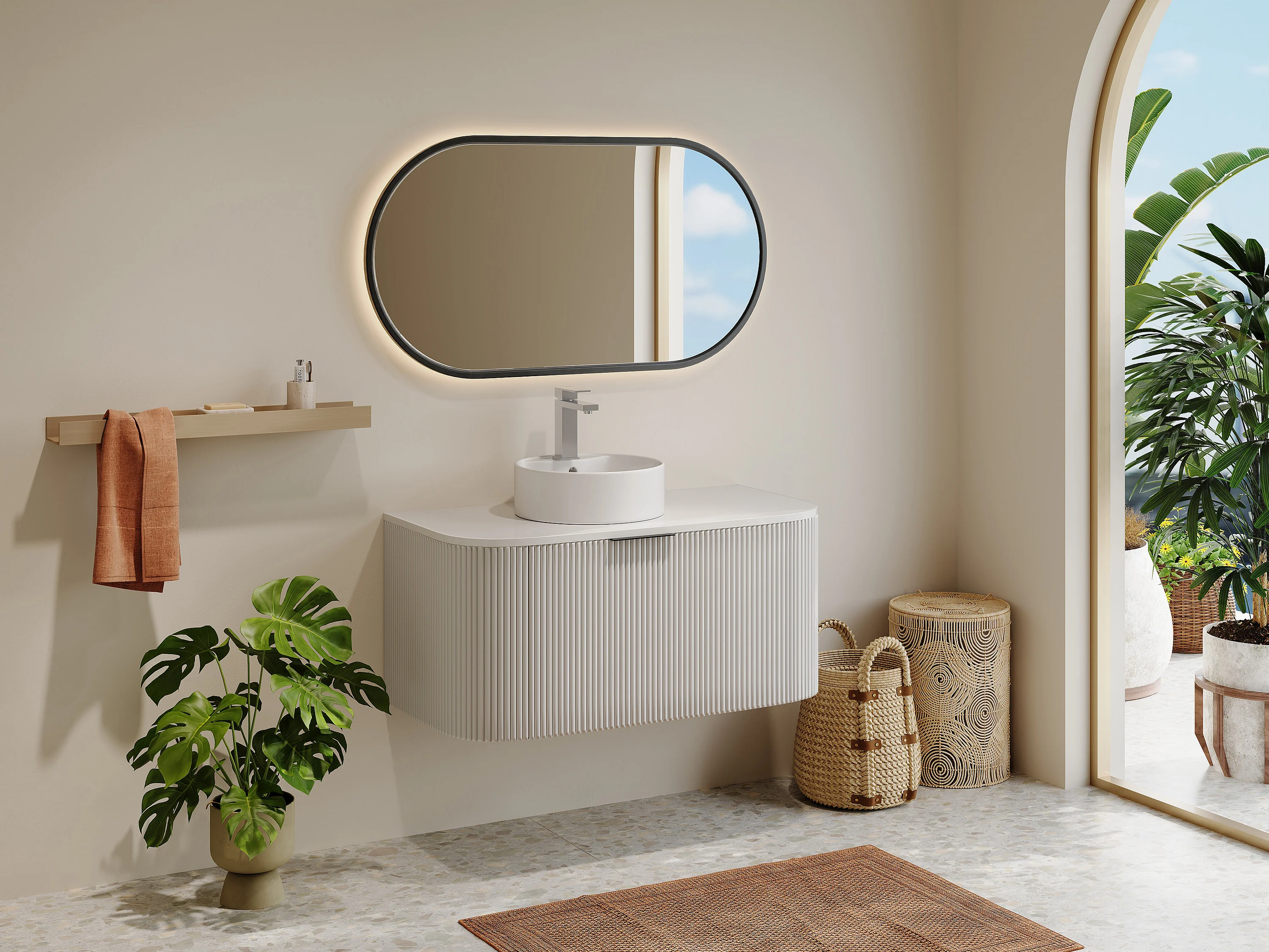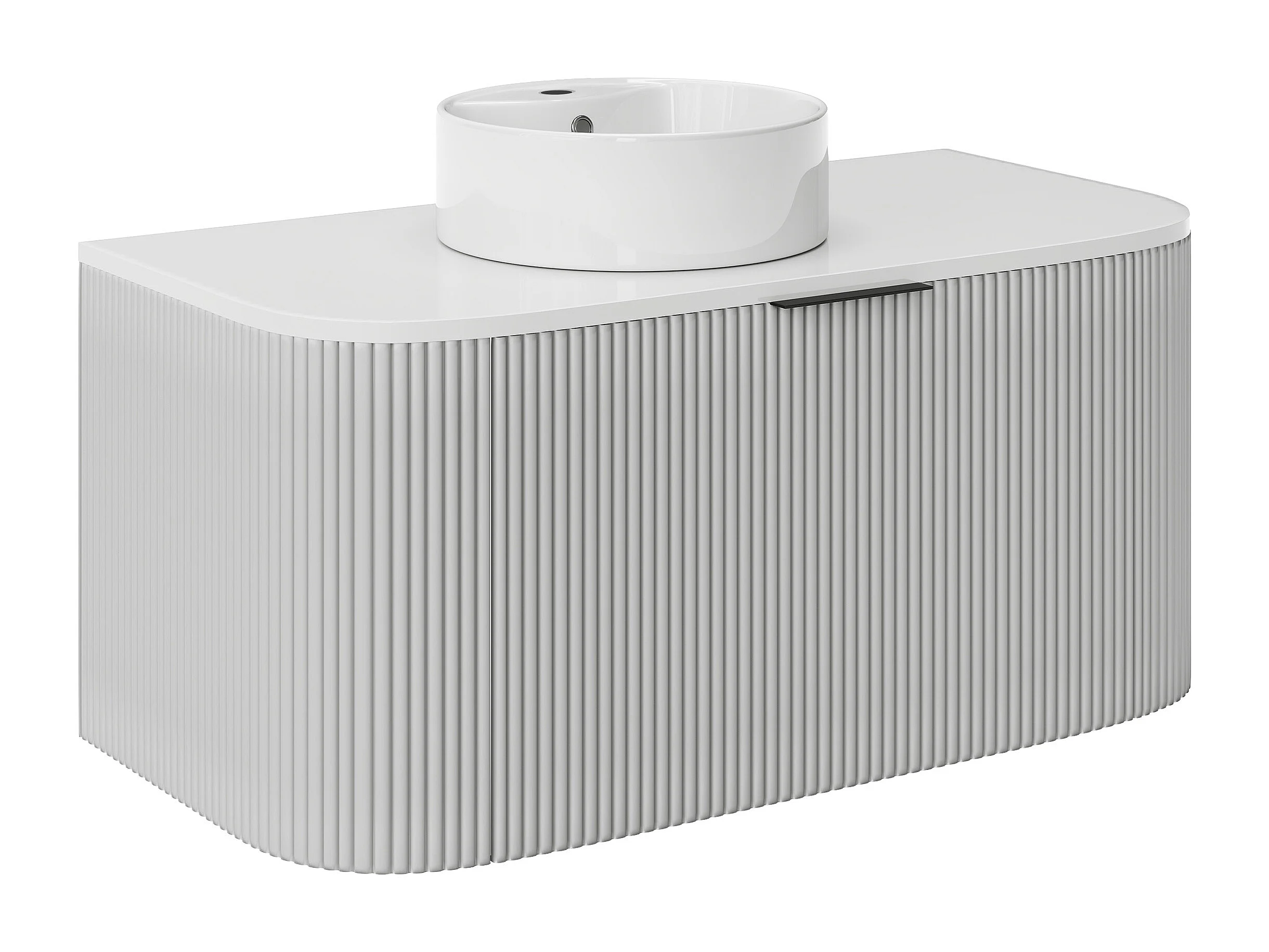Mobile per bagno sospeso con scanalature e lavabo da appoggio 100 cm Bianco opaco - LOMERI