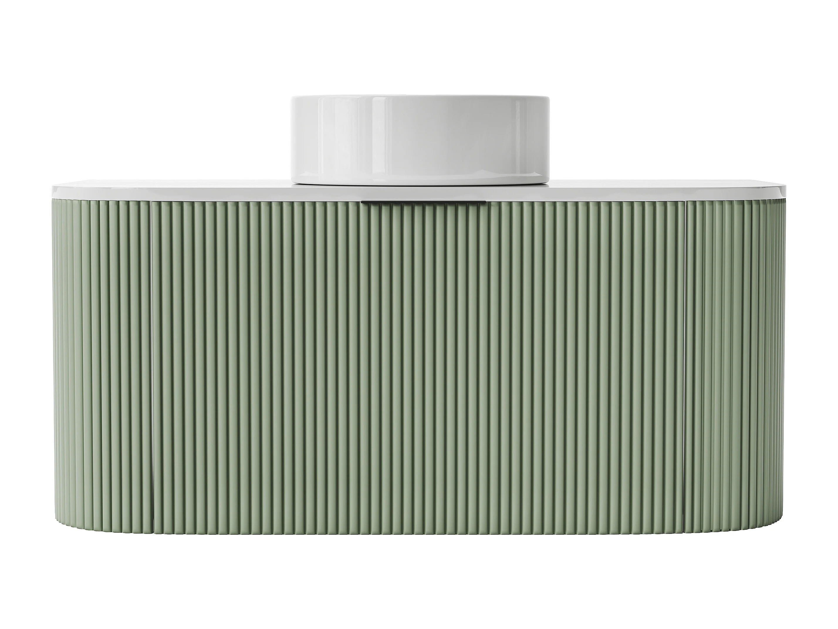 Mobile per bagno sospeso con scanalature e lavabo da appoggio 100 cm Verde opaco - LOMERI
