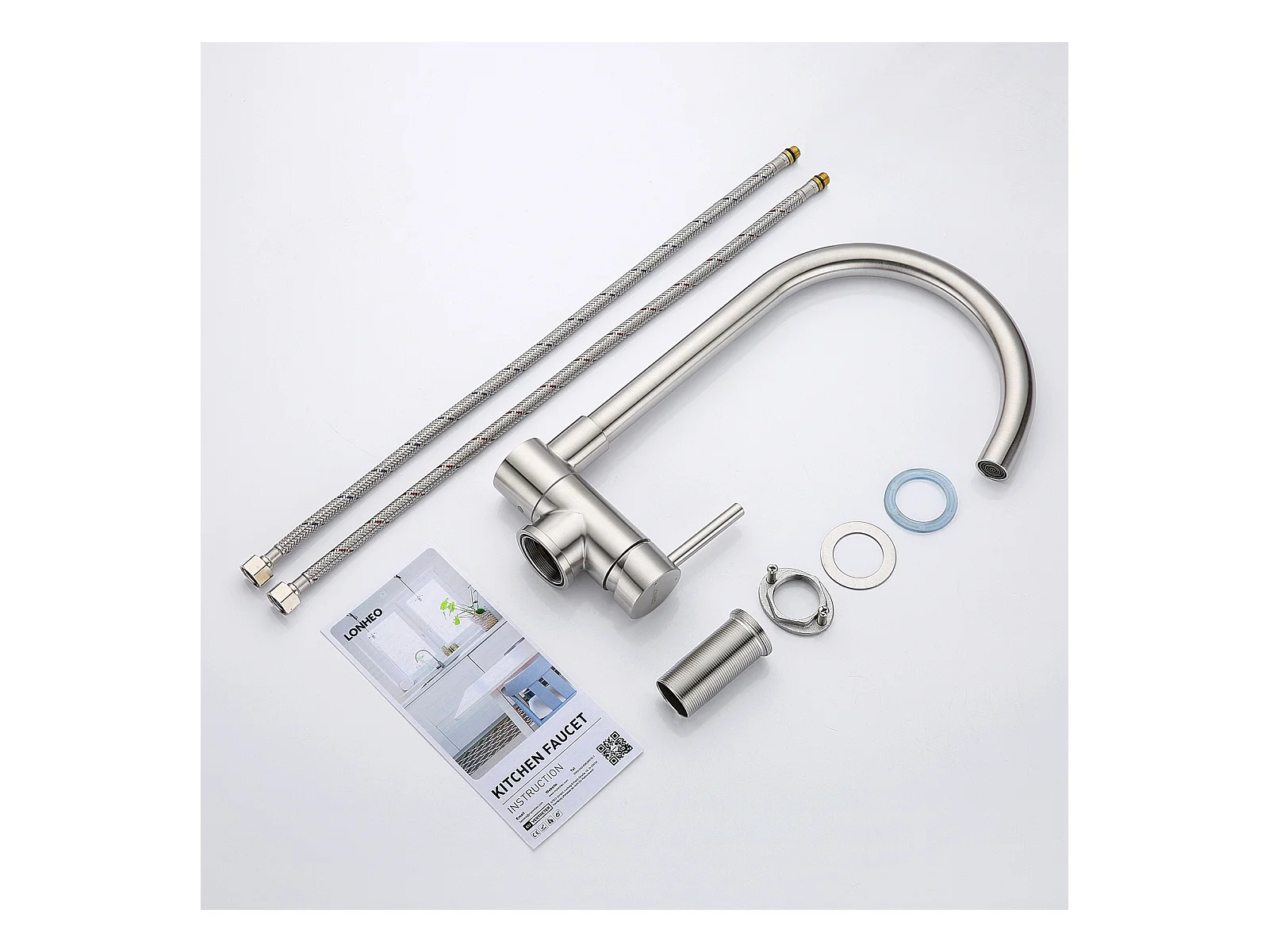 2pcs Rubinetto da cucina Beccuccio alto cromato girevole a 360° Miscelatore Lavello con schiumatore smontabile Rubinetto lavello Cucina