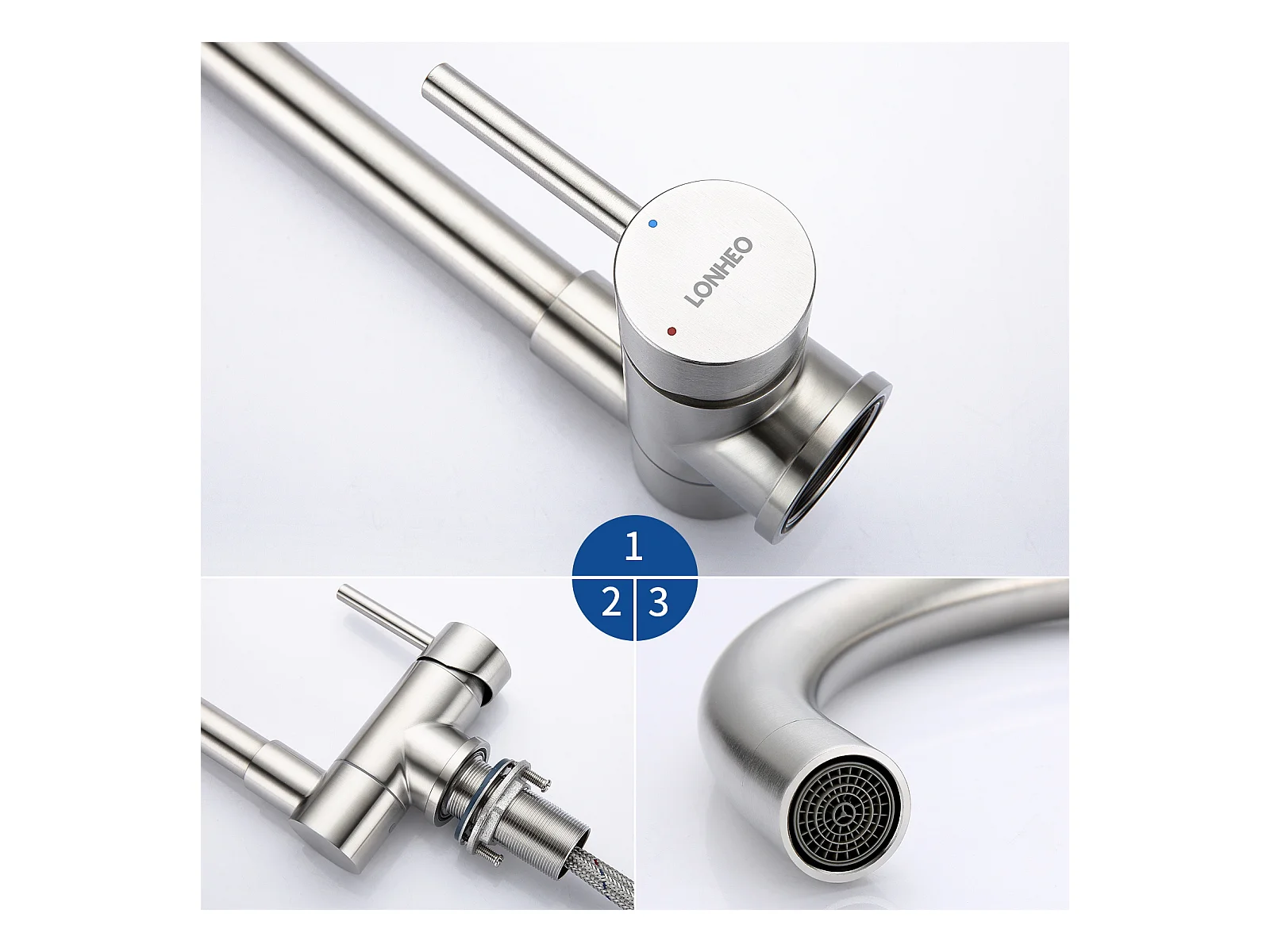 Lonheo Max 2pcs Miscelatore Cucina Pieghevole Girevole 360° ,con Maniglia Pieghevole Contro Finestra Rubinetto Lavello Acciaio Inox,Modello UE