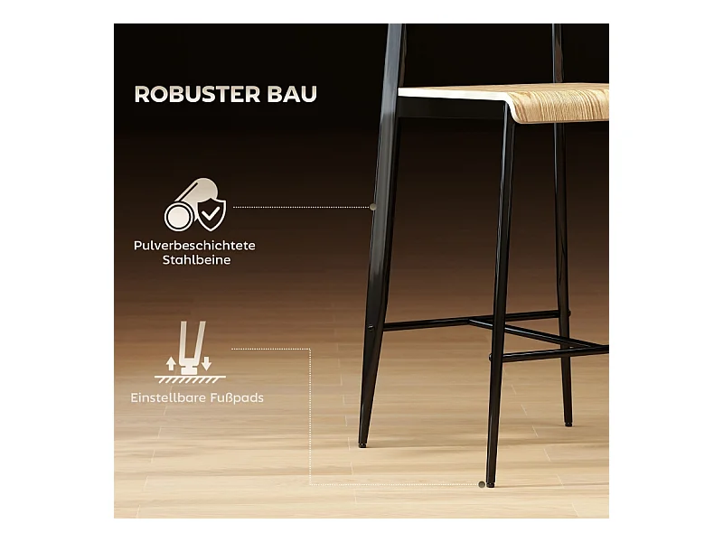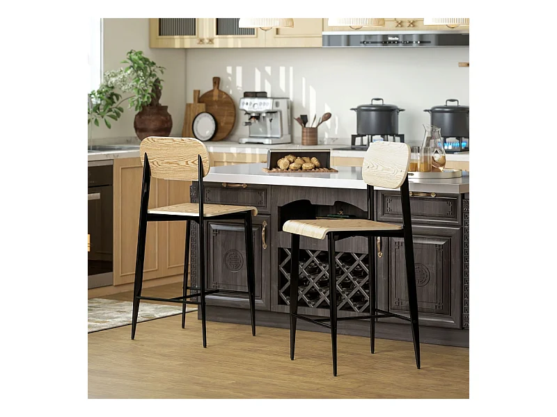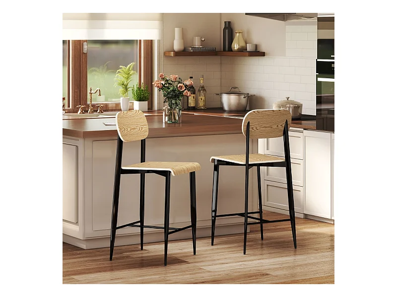 Lotto 2 tabourets bar métal bois naturel design industriel hauteur 66 cm kitchen noir