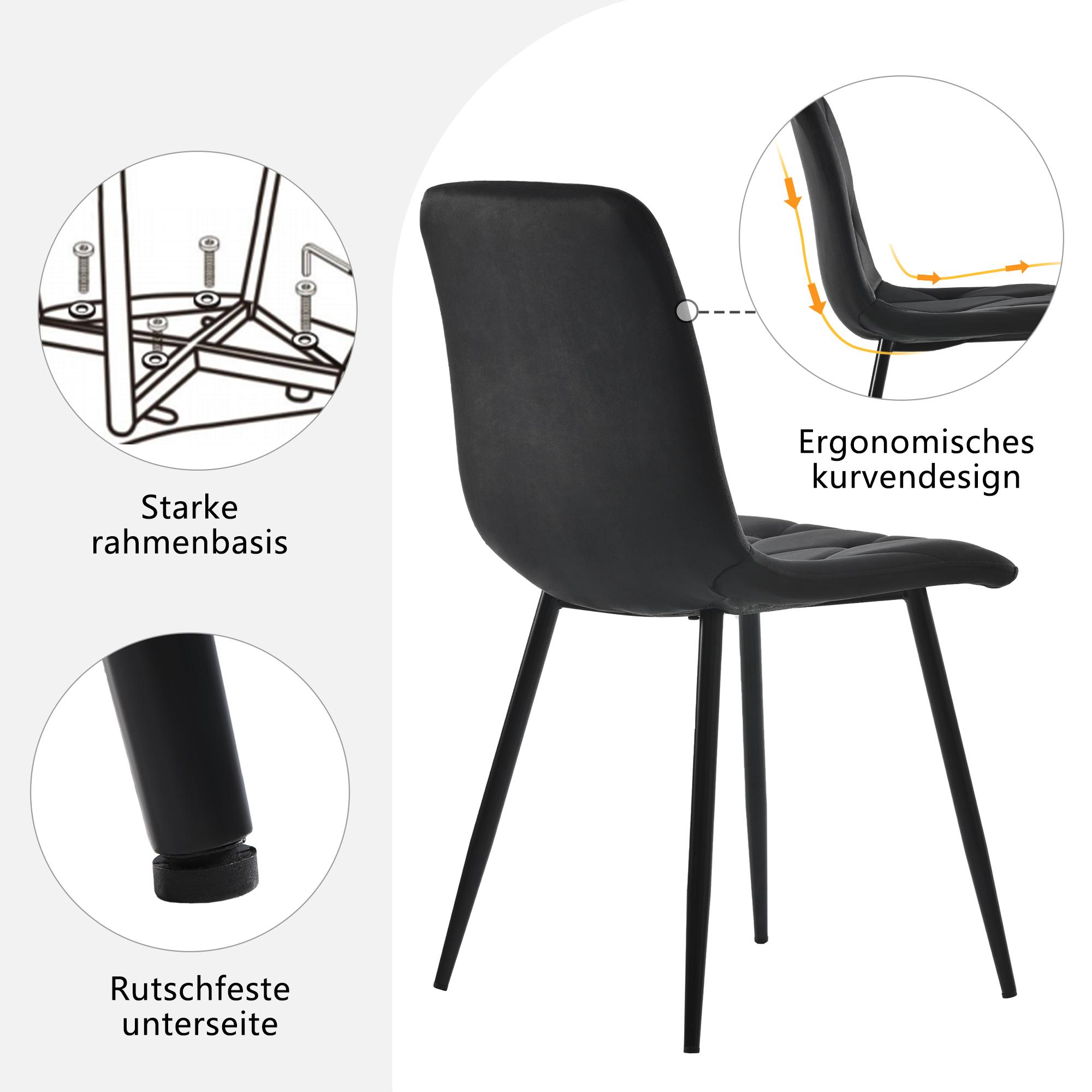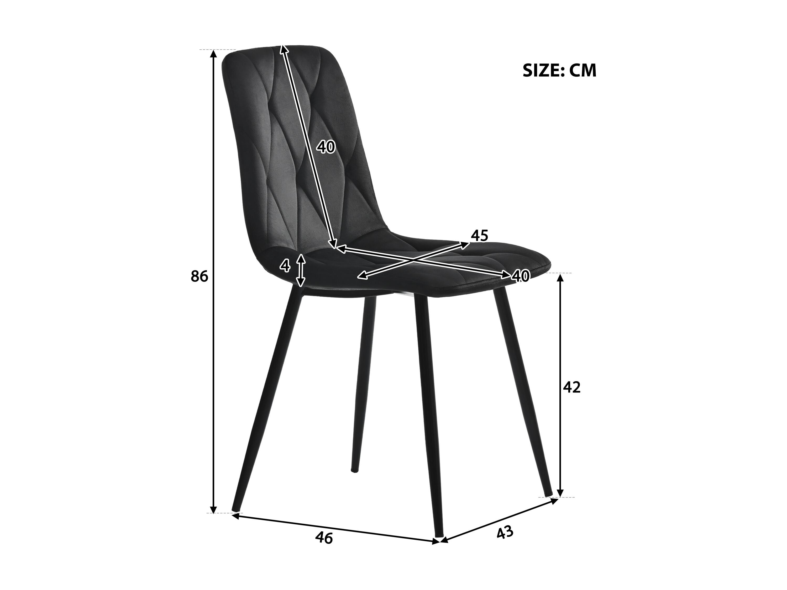 Lotto 4 chaises salle à manger velours twill noir dossier métal design moderne pieds métal 45x40x86 cm
