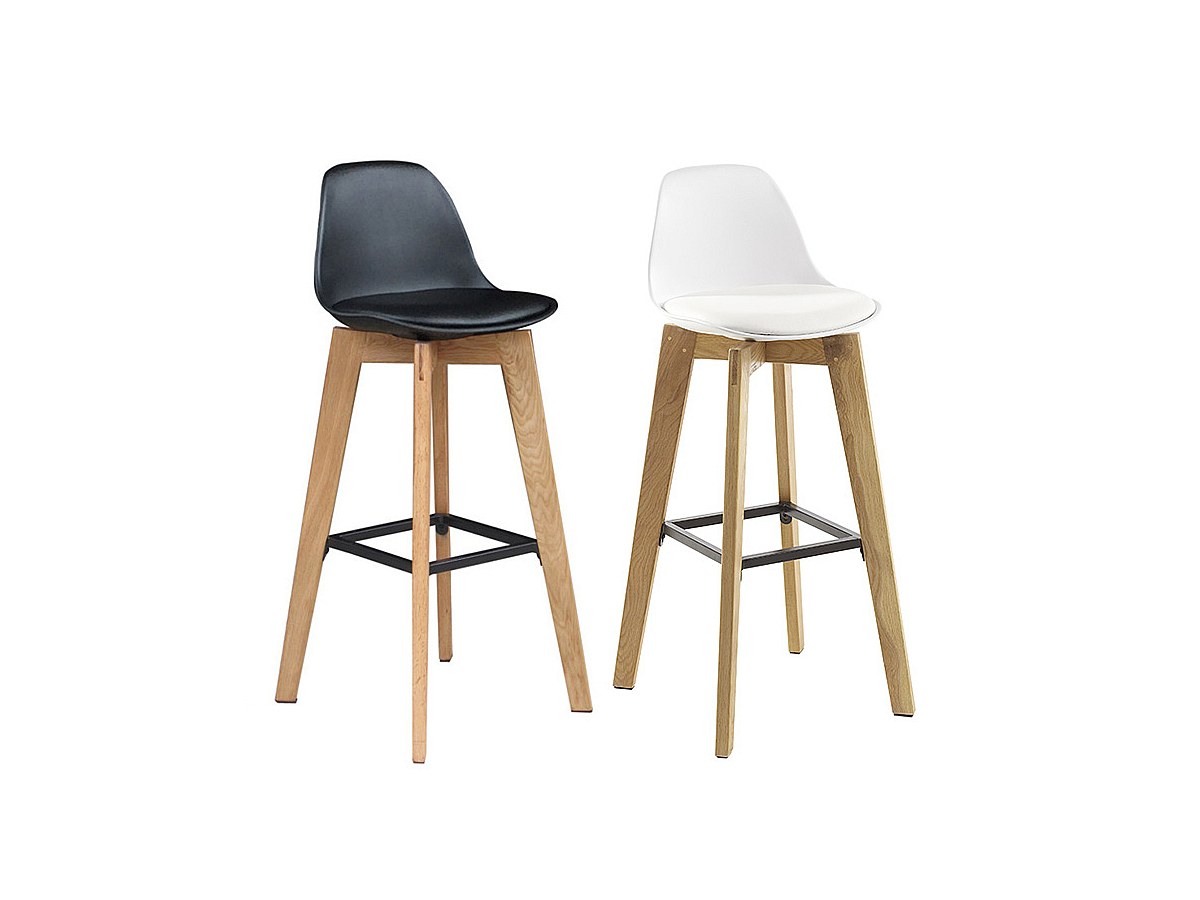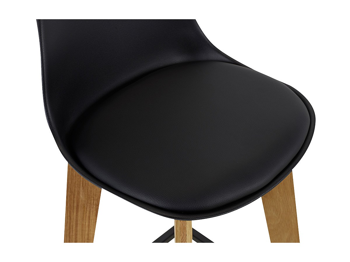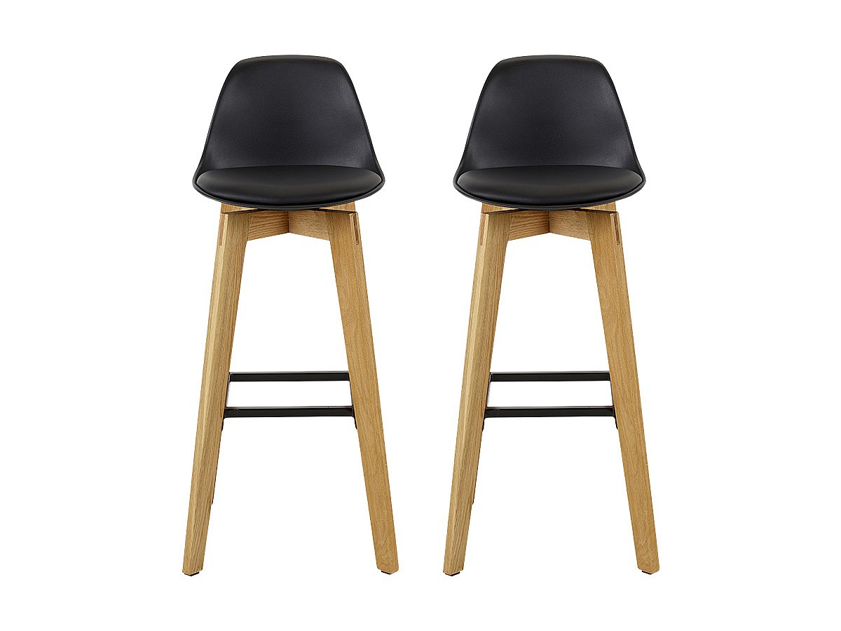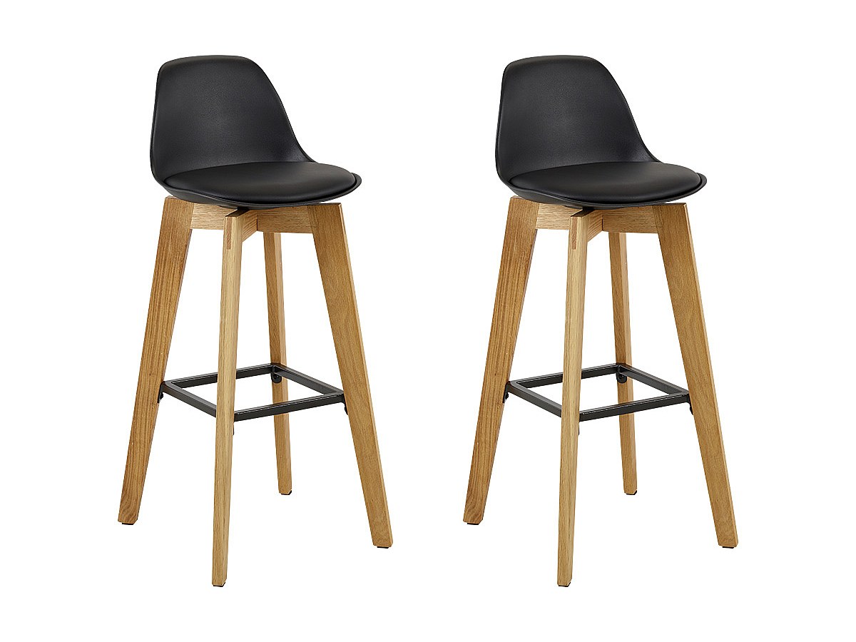 Lotto di 2 sgabelli da bar PADDY - Polipropilene, similpelle e quercia - Nero
