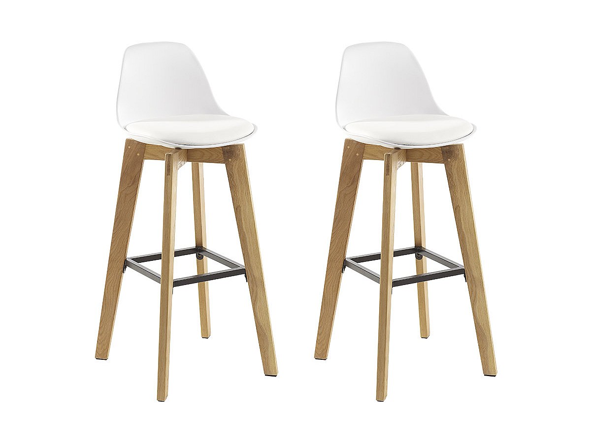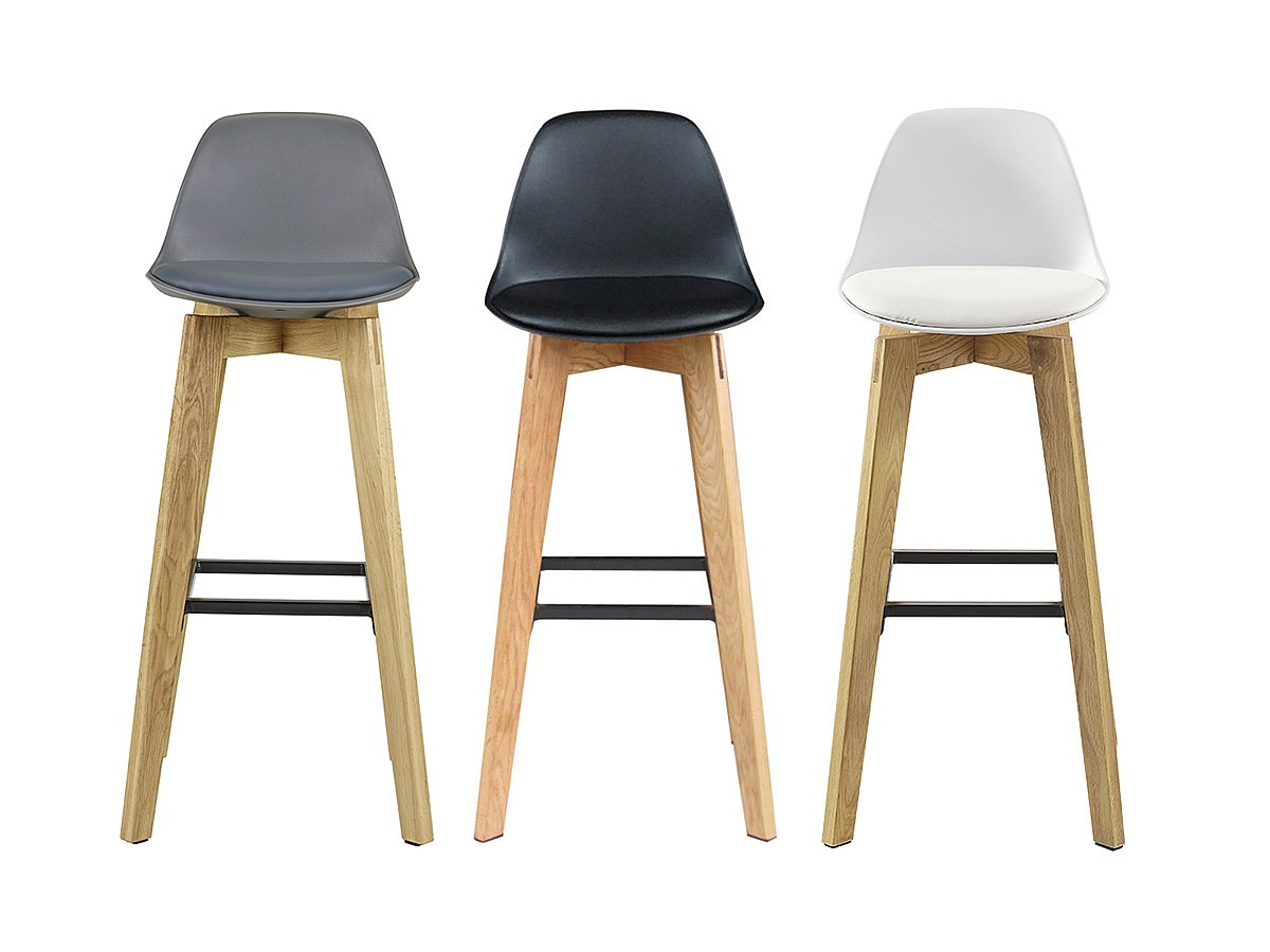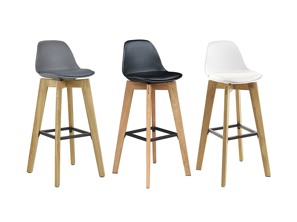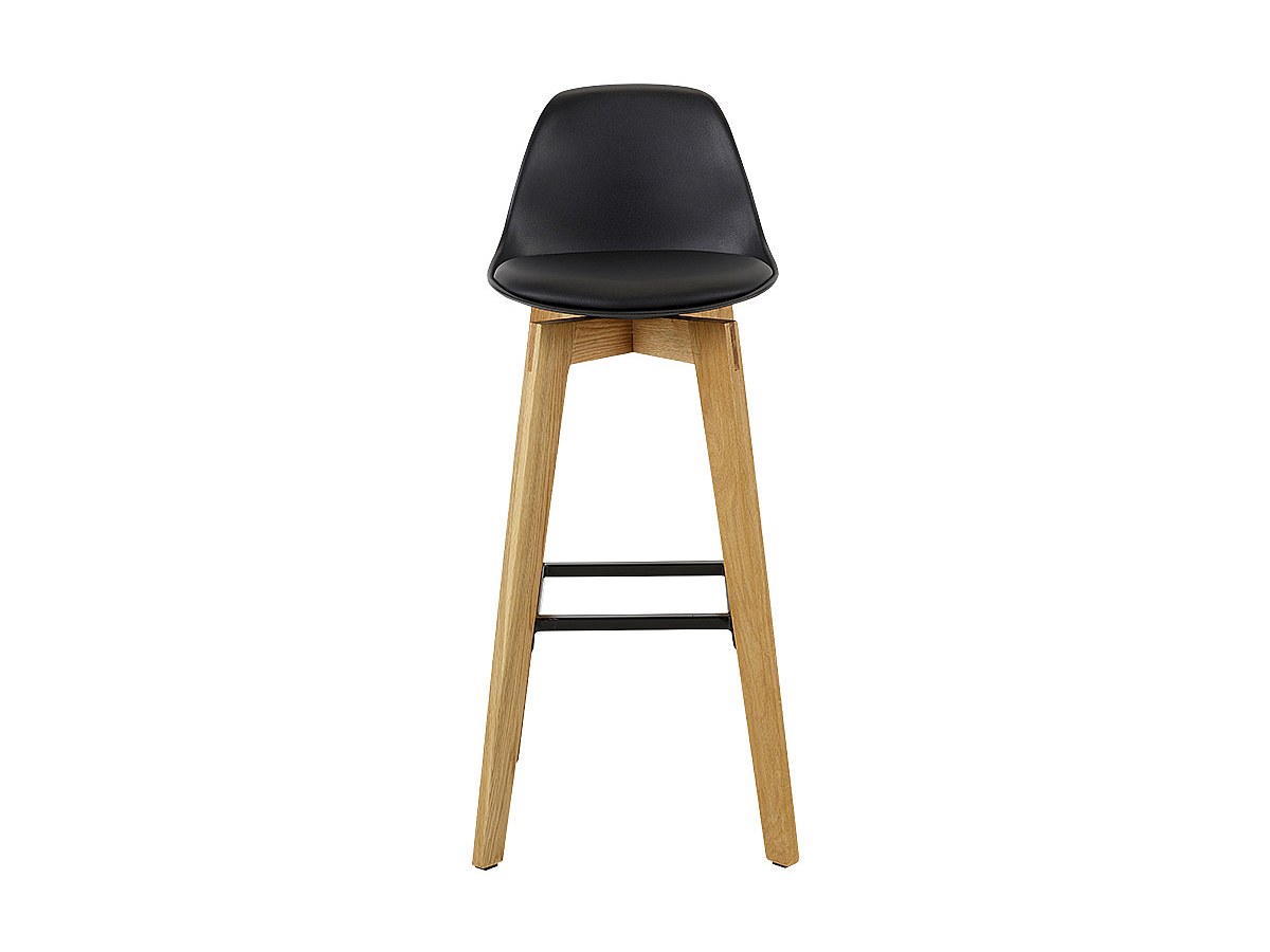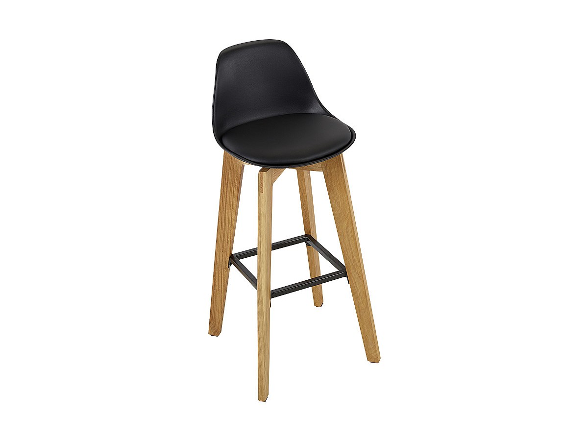 Lotto di 2 sgabelli da bar PADDY - Polipropilene, similpelle e quercia - Nero