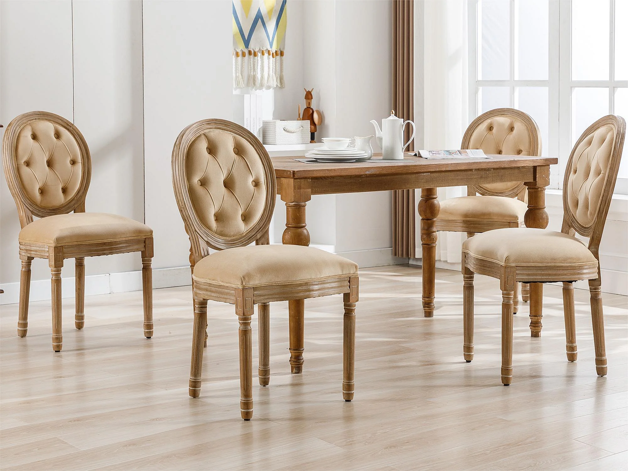 Lotto di 4 chaise longue in velluto con bottoni capitonnés - cadre in bois massif - Marron