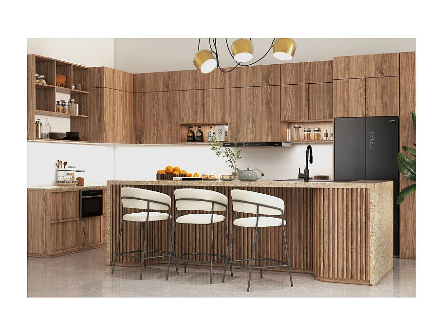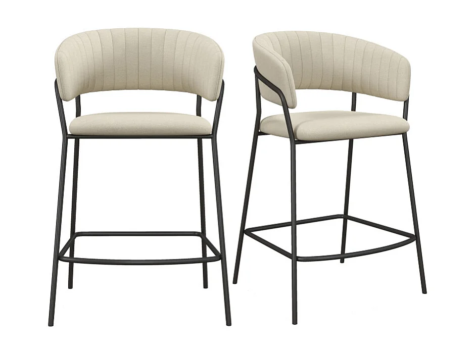 LUCA-Sedia da bar in tessuto crema e metallo nero (x2)