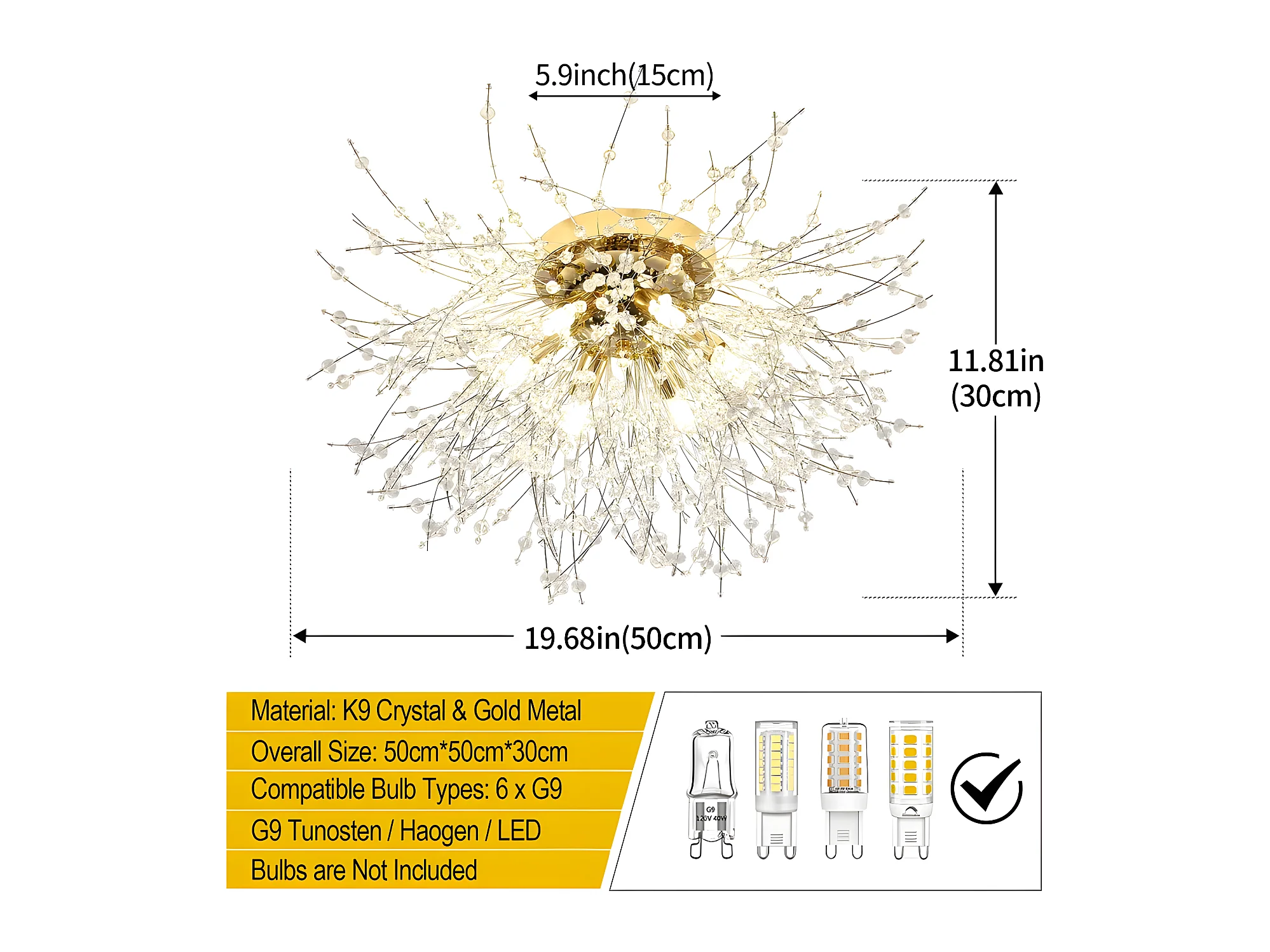 Luce a soffitto a LED in cristallo moderno k9 soggiorno 6 luci lampadina g9 50 * 50 * 30 cm per la camera da letto soggiorno
