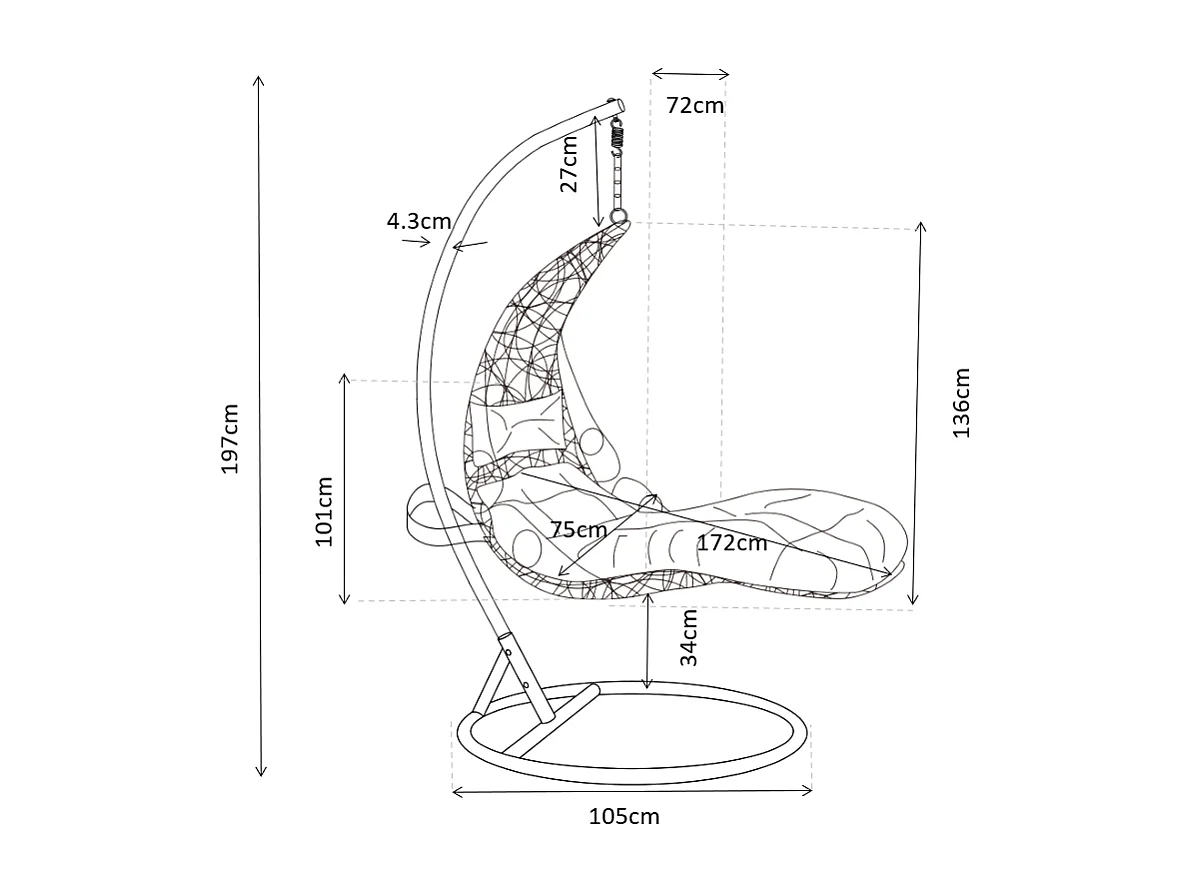 Poltrona sospesa in Resina intrecciata Nero con cuscino Grigio - LUVA di MYLIA