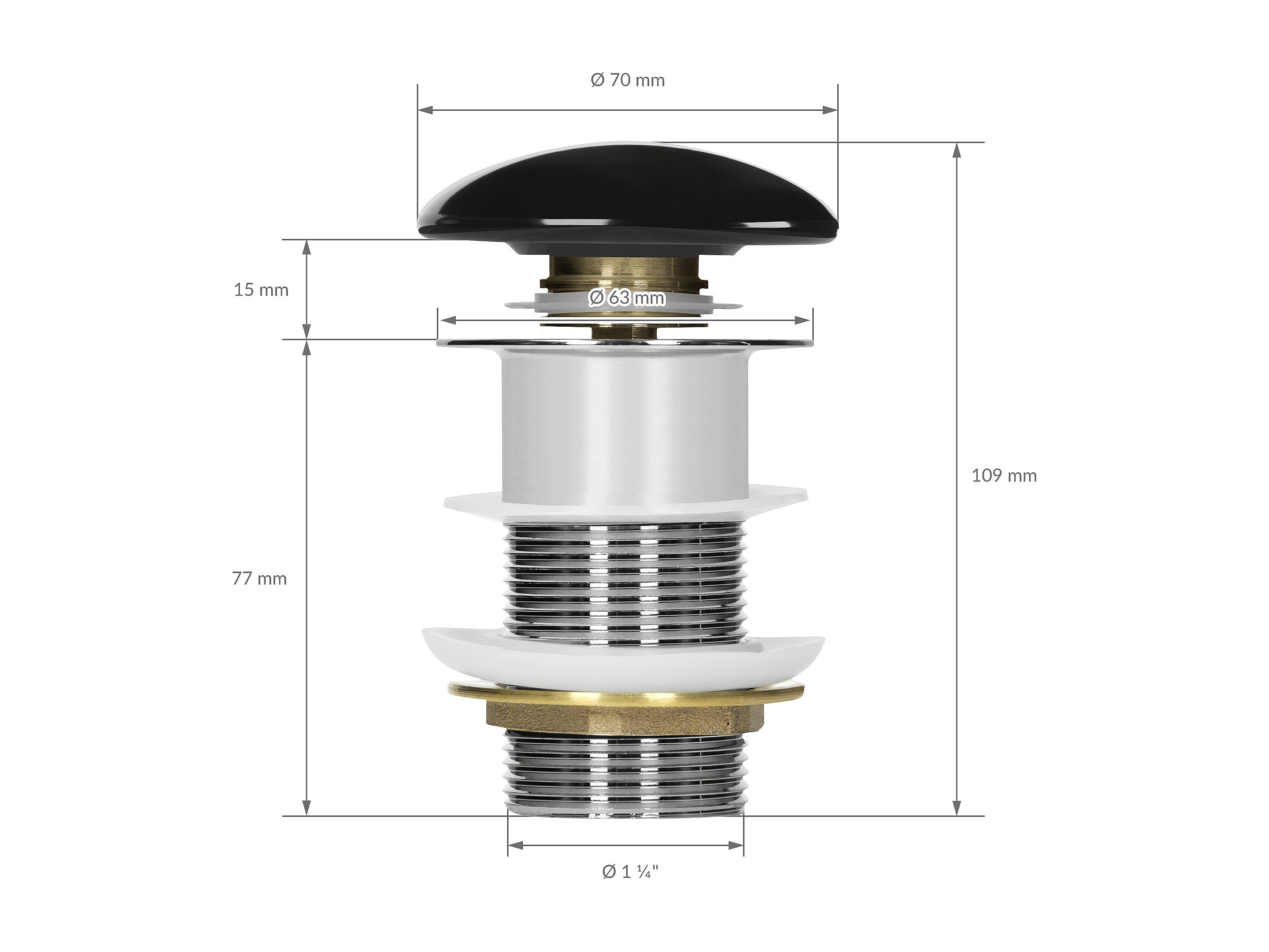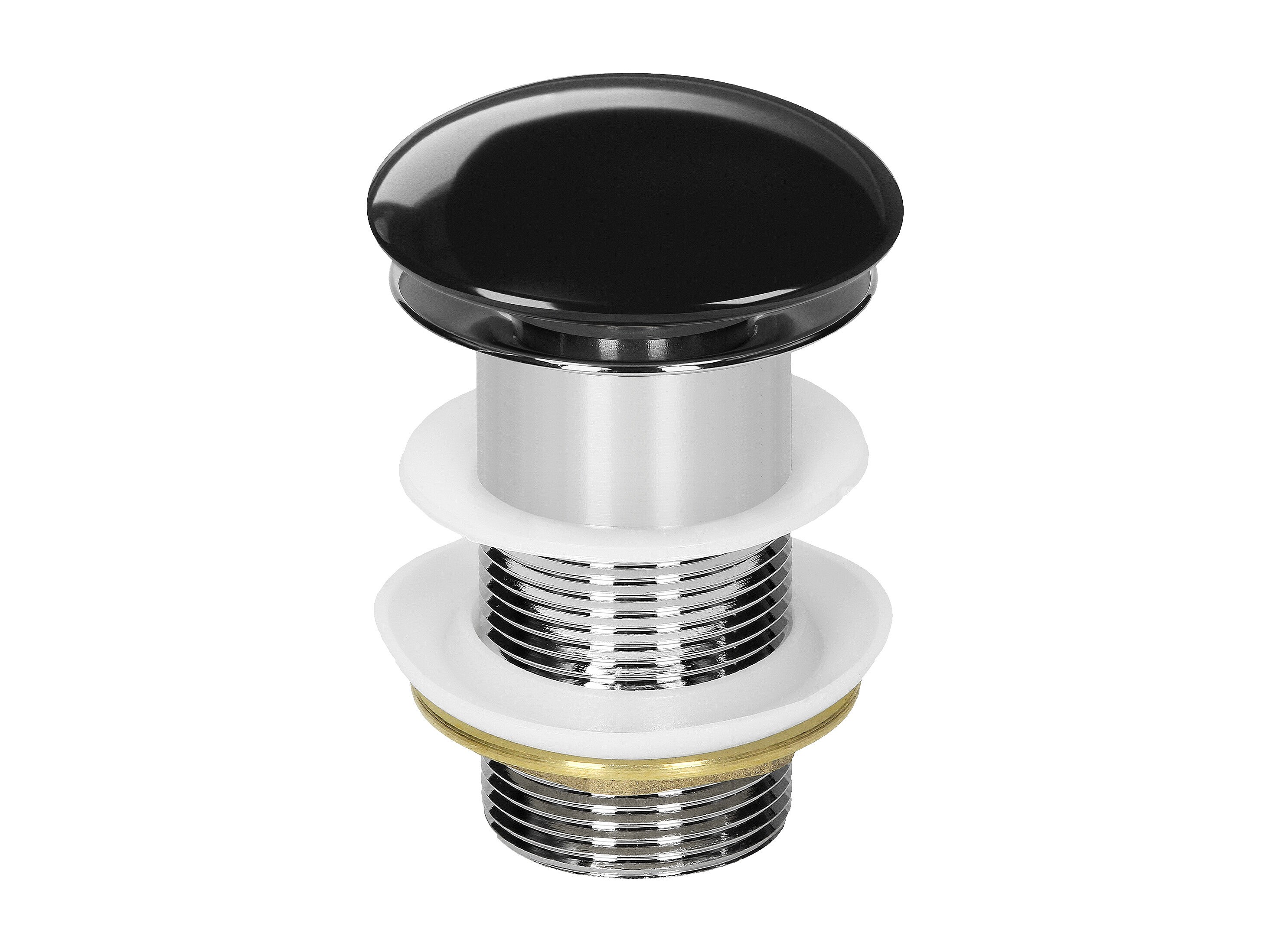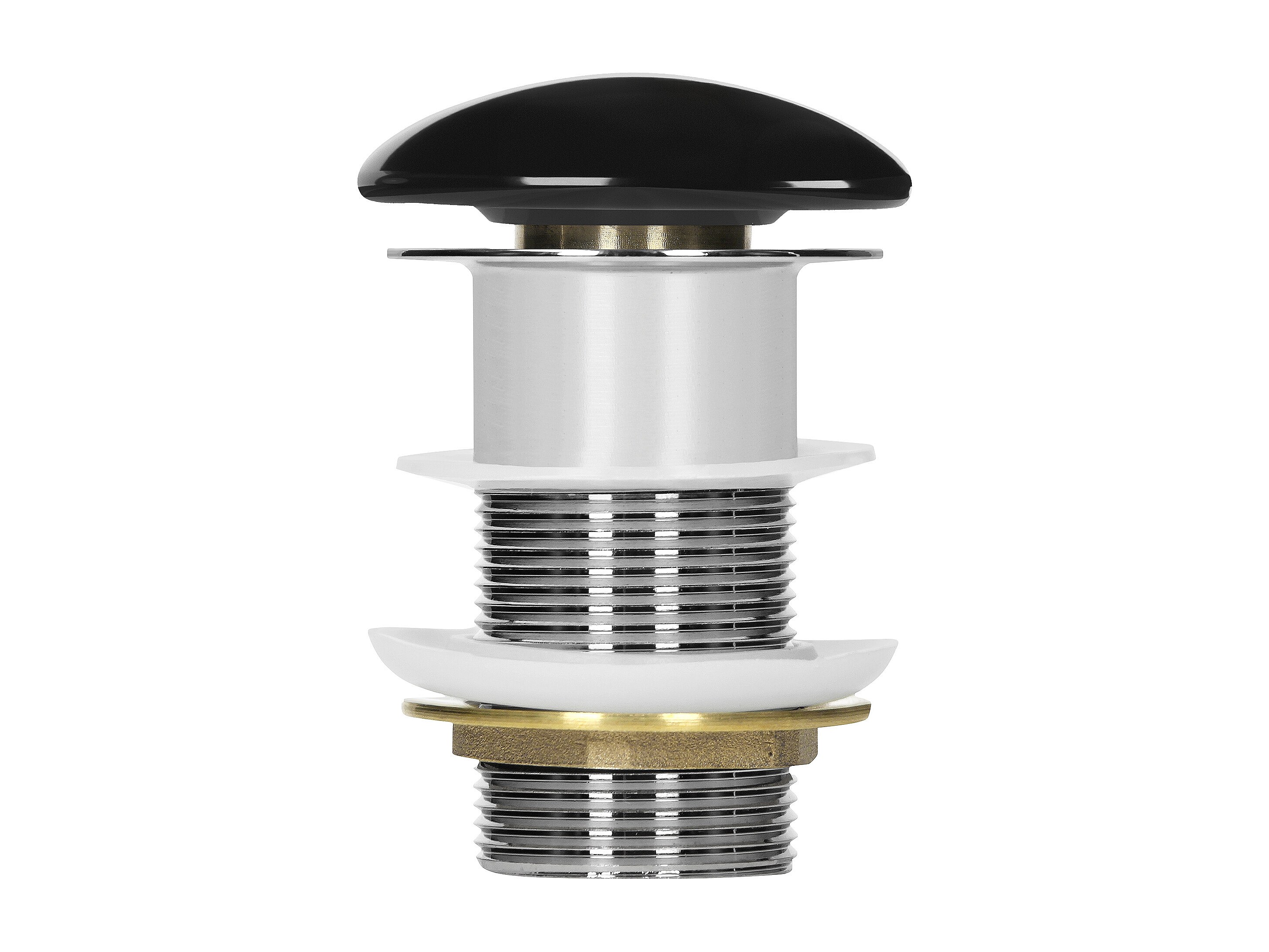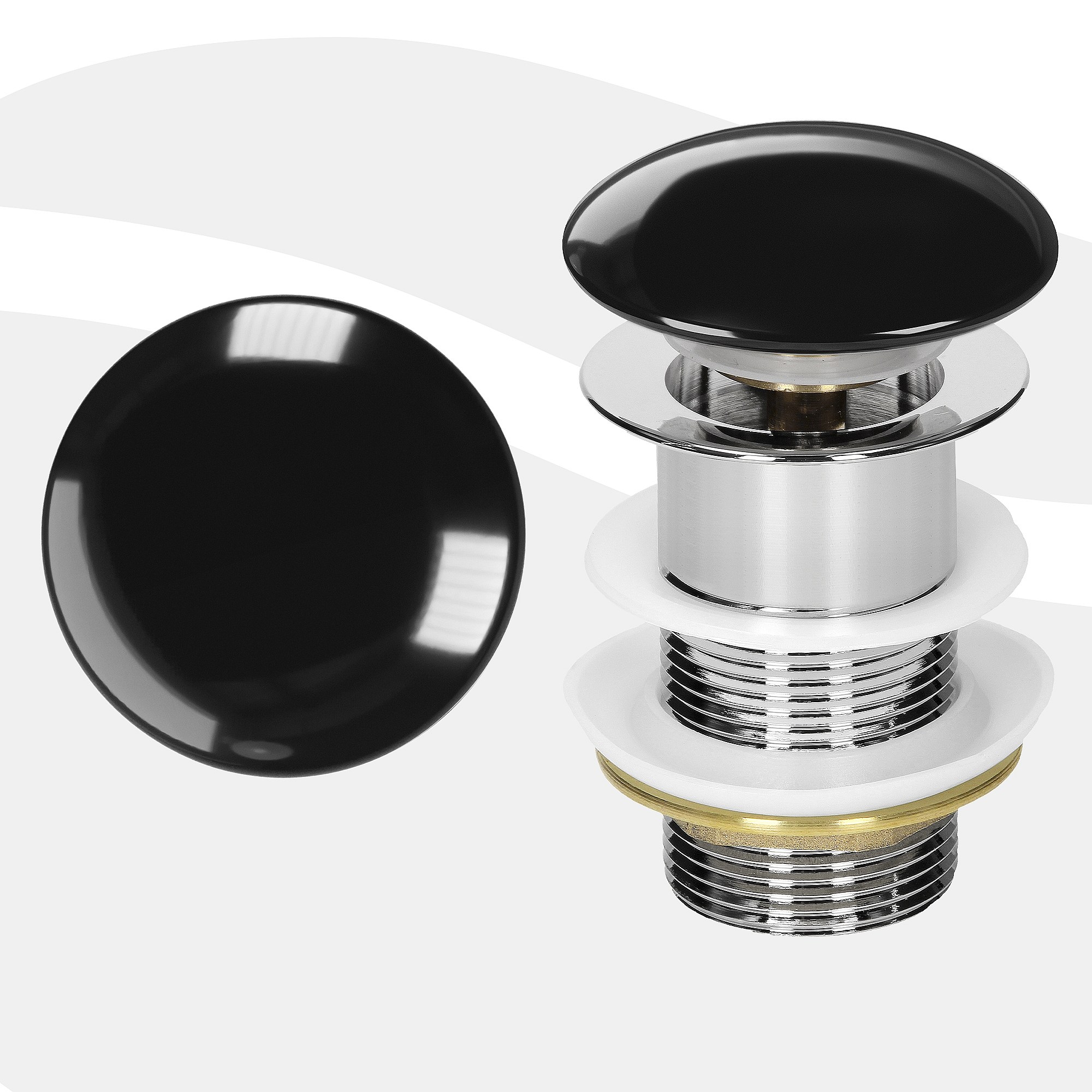 LuxeBath Piletta di scarico per lavabo senza troppopieno universale tappo click-clack per lavello in ceramica nero lucido e acciaio attacco 1 1/4''