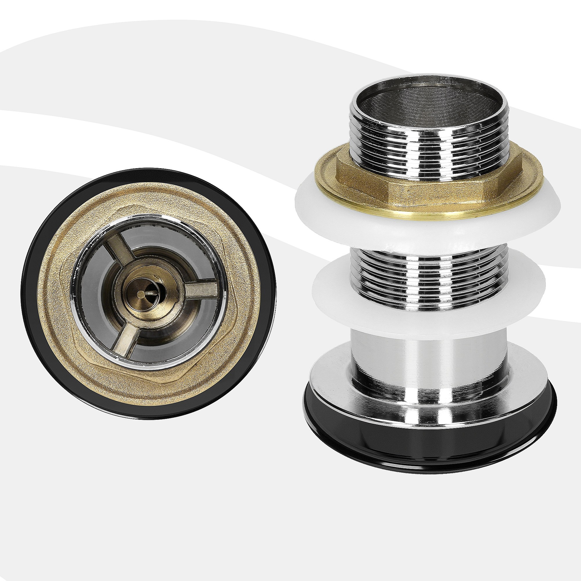 2PCS Soffietto per lavabo Soffietto Pop-up con troppopieno automatico universale nero+cromato lavabo vasca da bagno