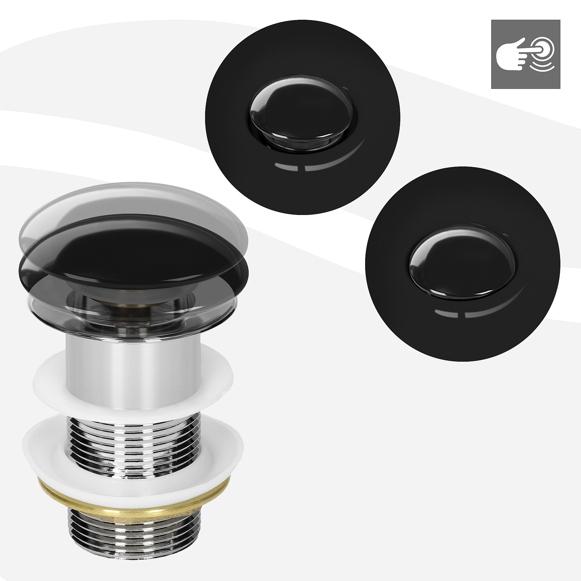 AuraLum Max 2pcs Bende Lavabo Nero Bende Pop-up con Troppopieno Automatico Universale Spingere Aprire Lavabo Vasca Bagno,Modello UE