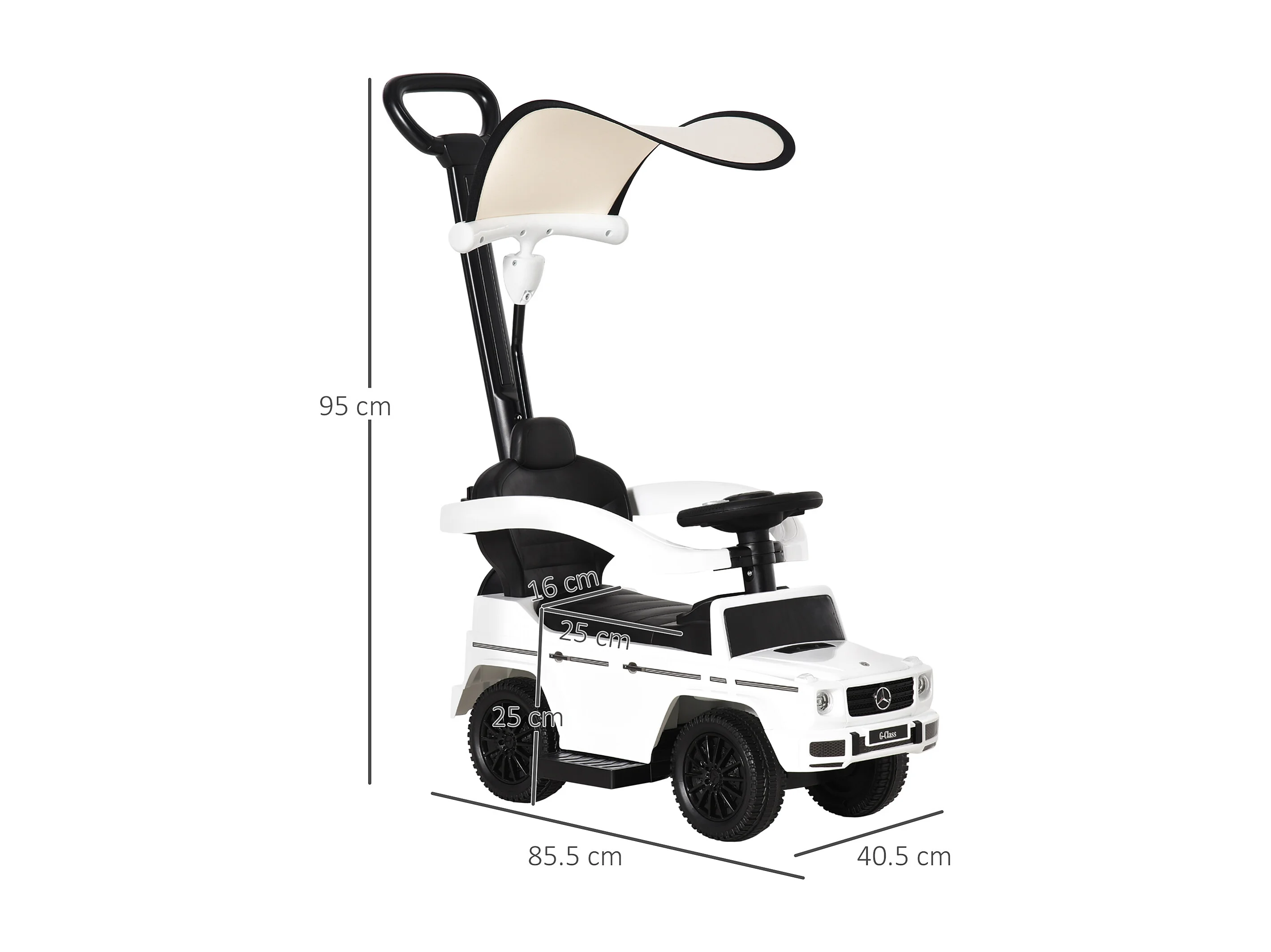 Macchina a spinta per bambini con tettuccio bianco