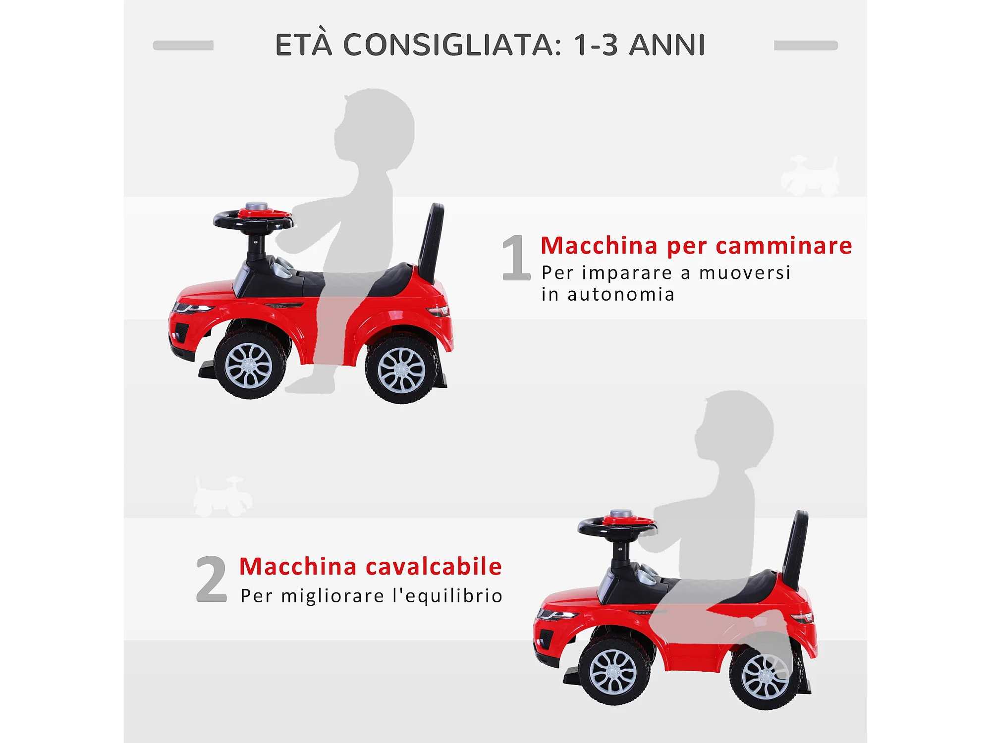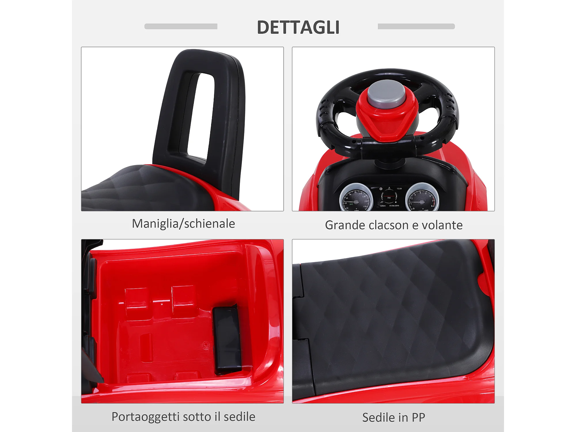 Macchina per bambini 12-36 mesi con clacson volante vano portaoggetti