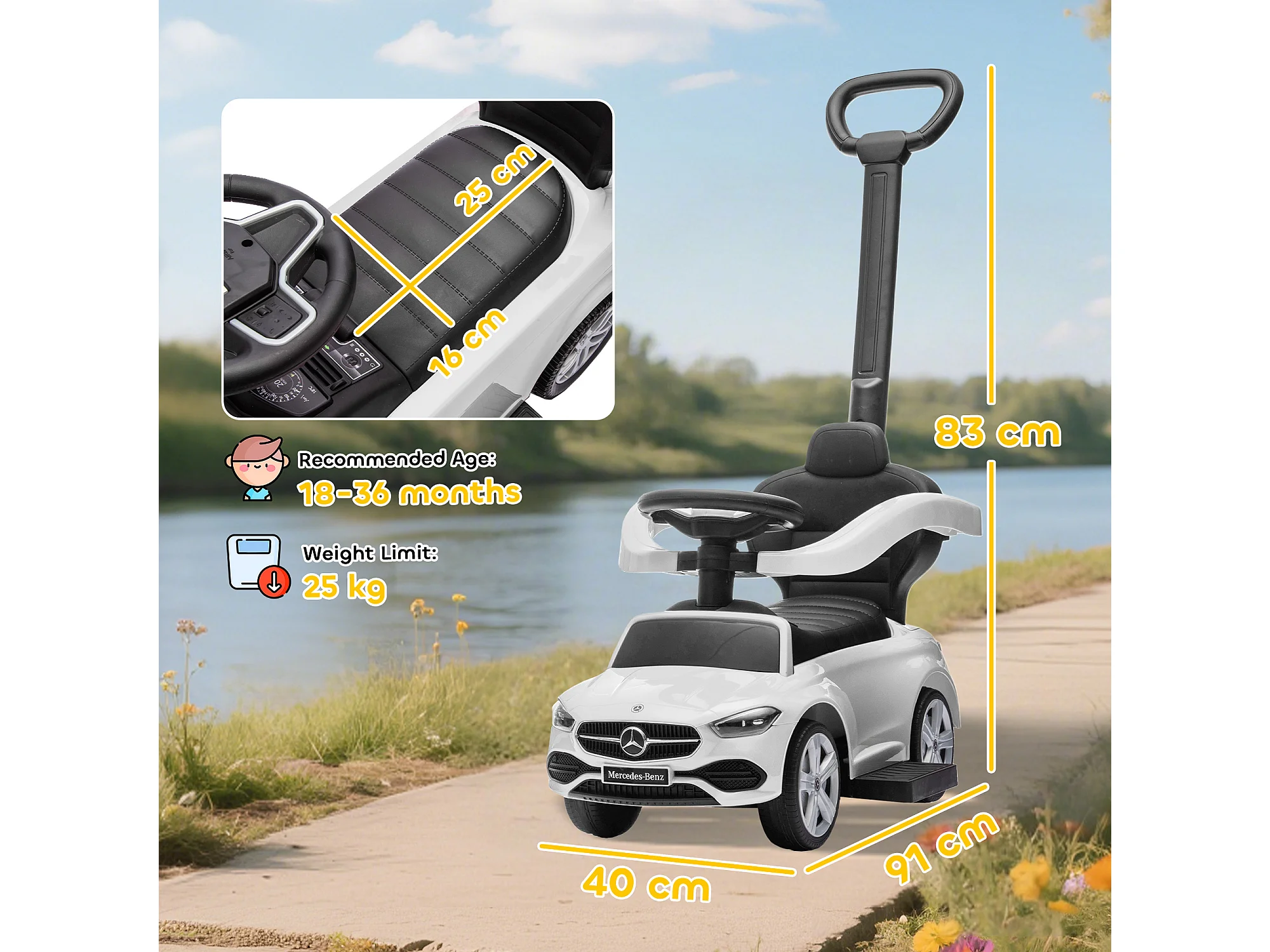 Macchina a spinta per bambini con tettuccio bianco