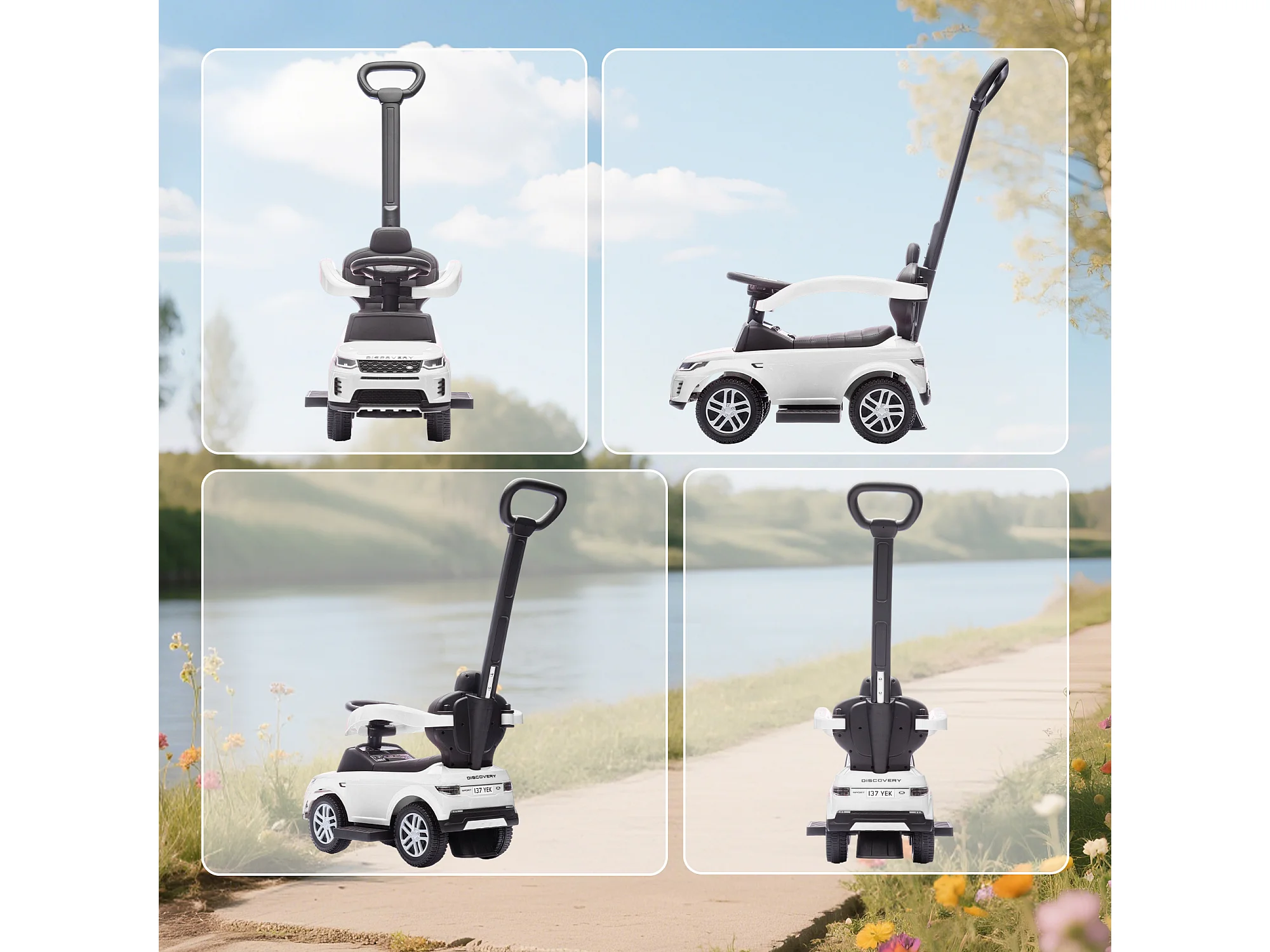 Macchina cavalcabile per bambini convertibile in passeggino bianco