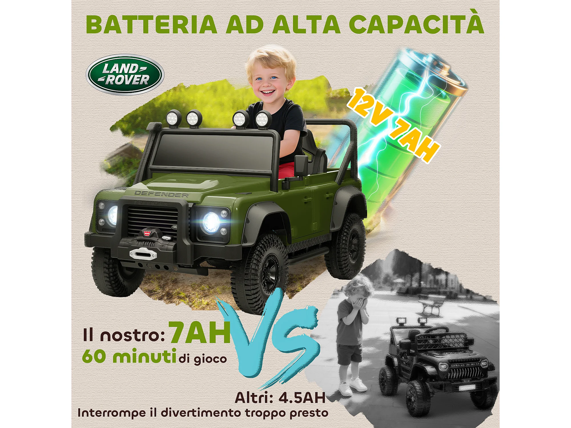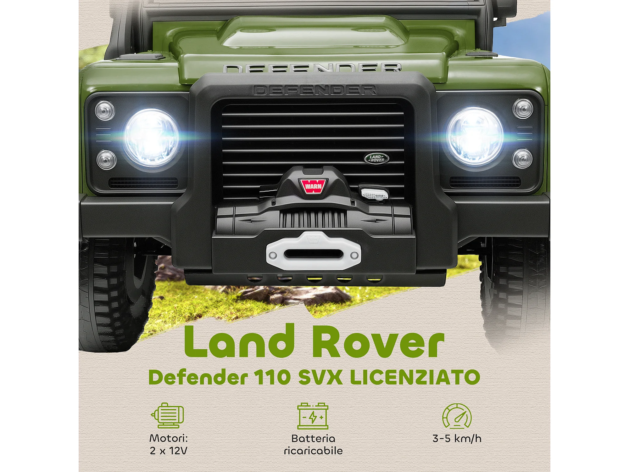 Macchina elettrica bambini 3-5 anni land rover con telecomando verde