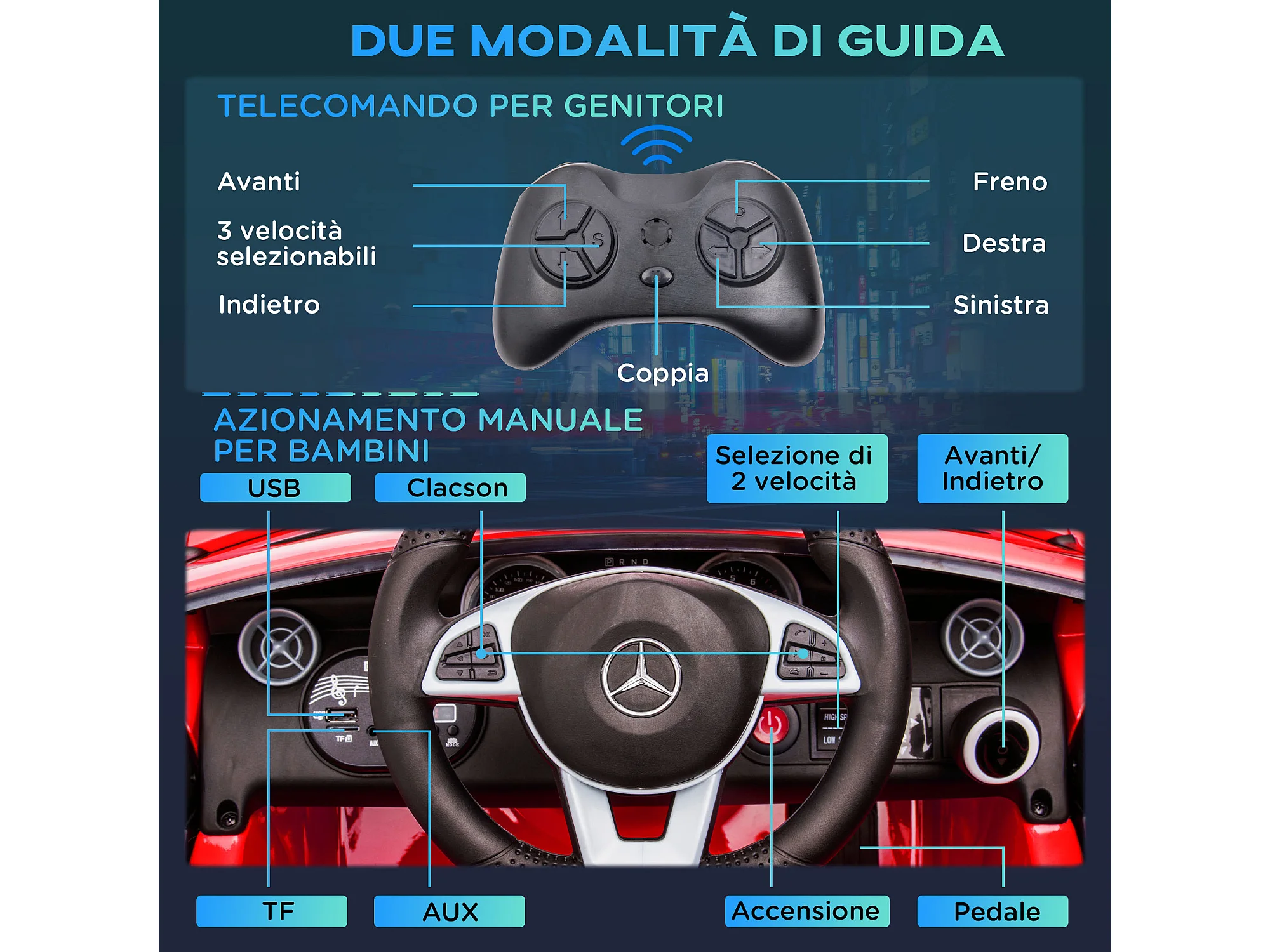 Macchina elettrica per bambini mercedes slc 300 con telecomando rosso