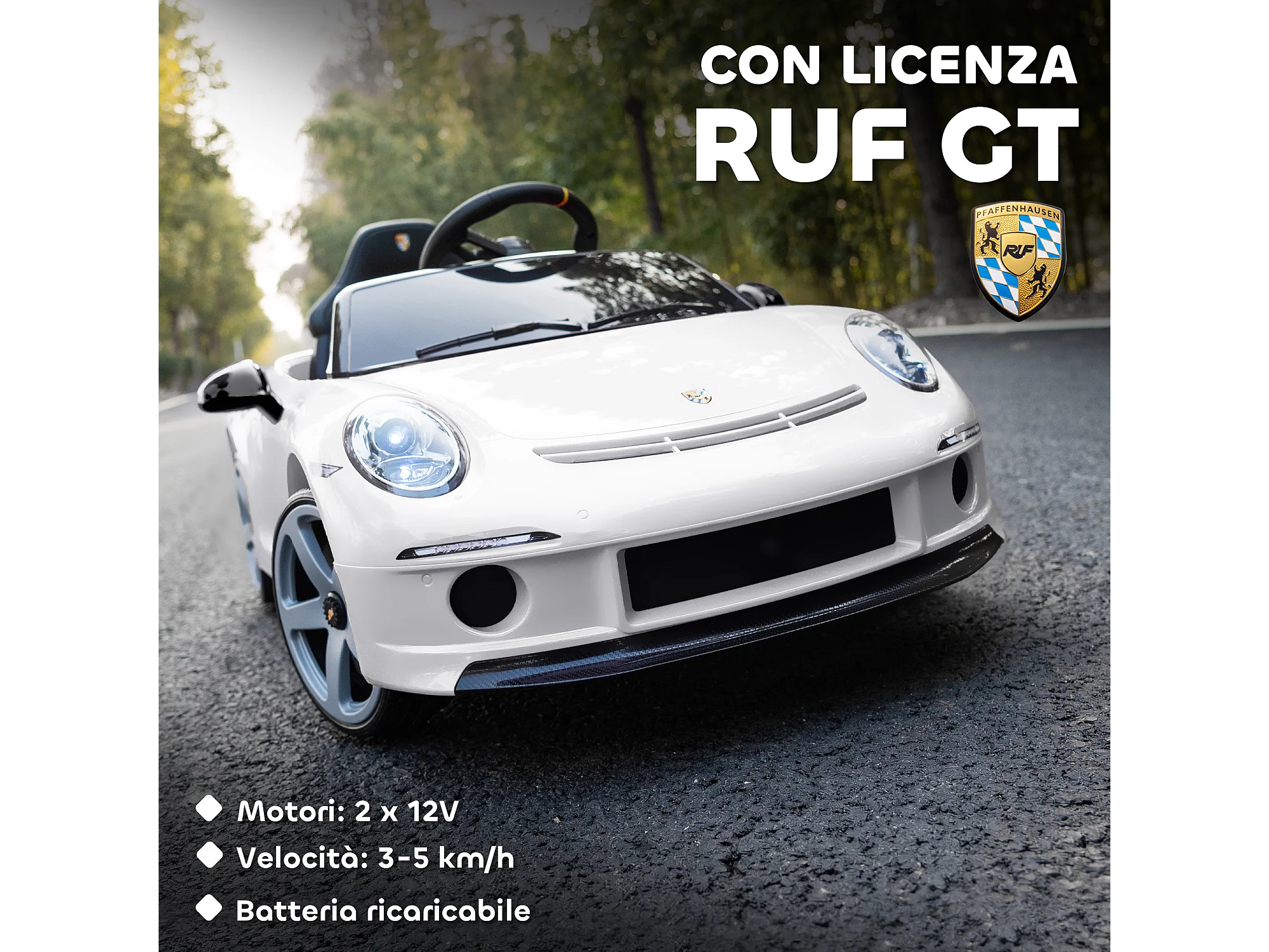 Macchina per bambini 3-5 anni con licenza ruf gt e telecomando bianco