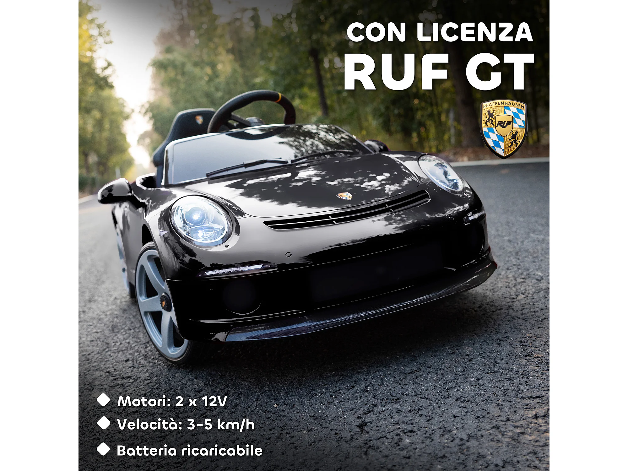 Macchina per bambini 3-5 anni con licenza ruf gt e telecomando nero