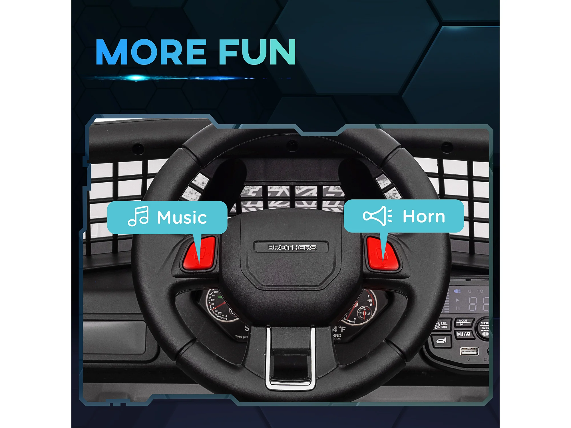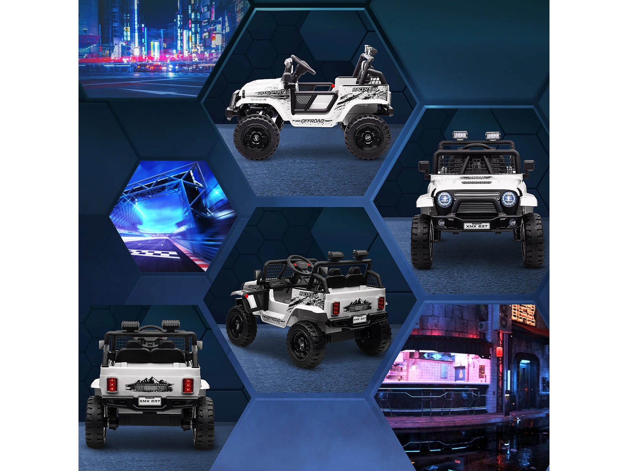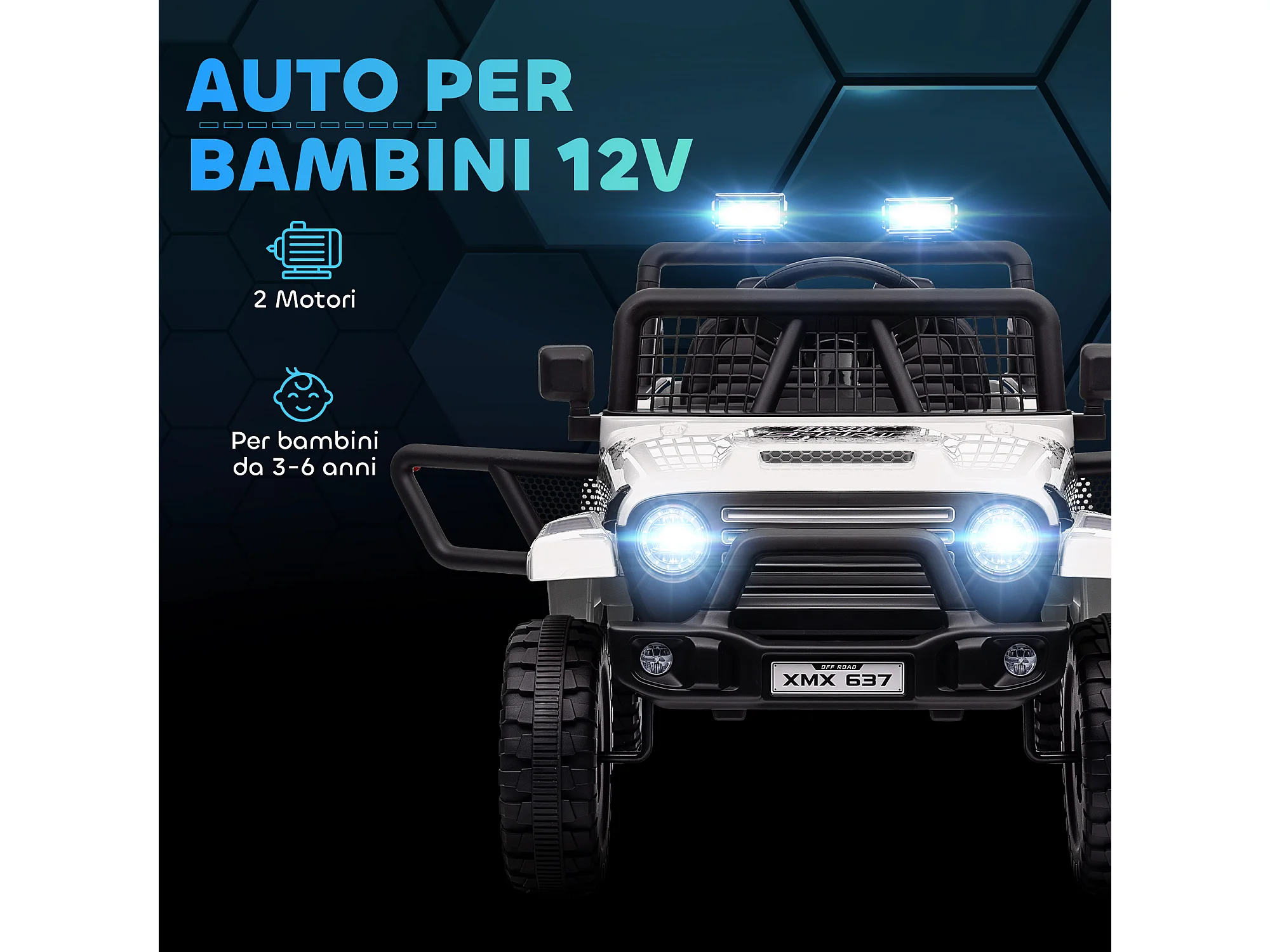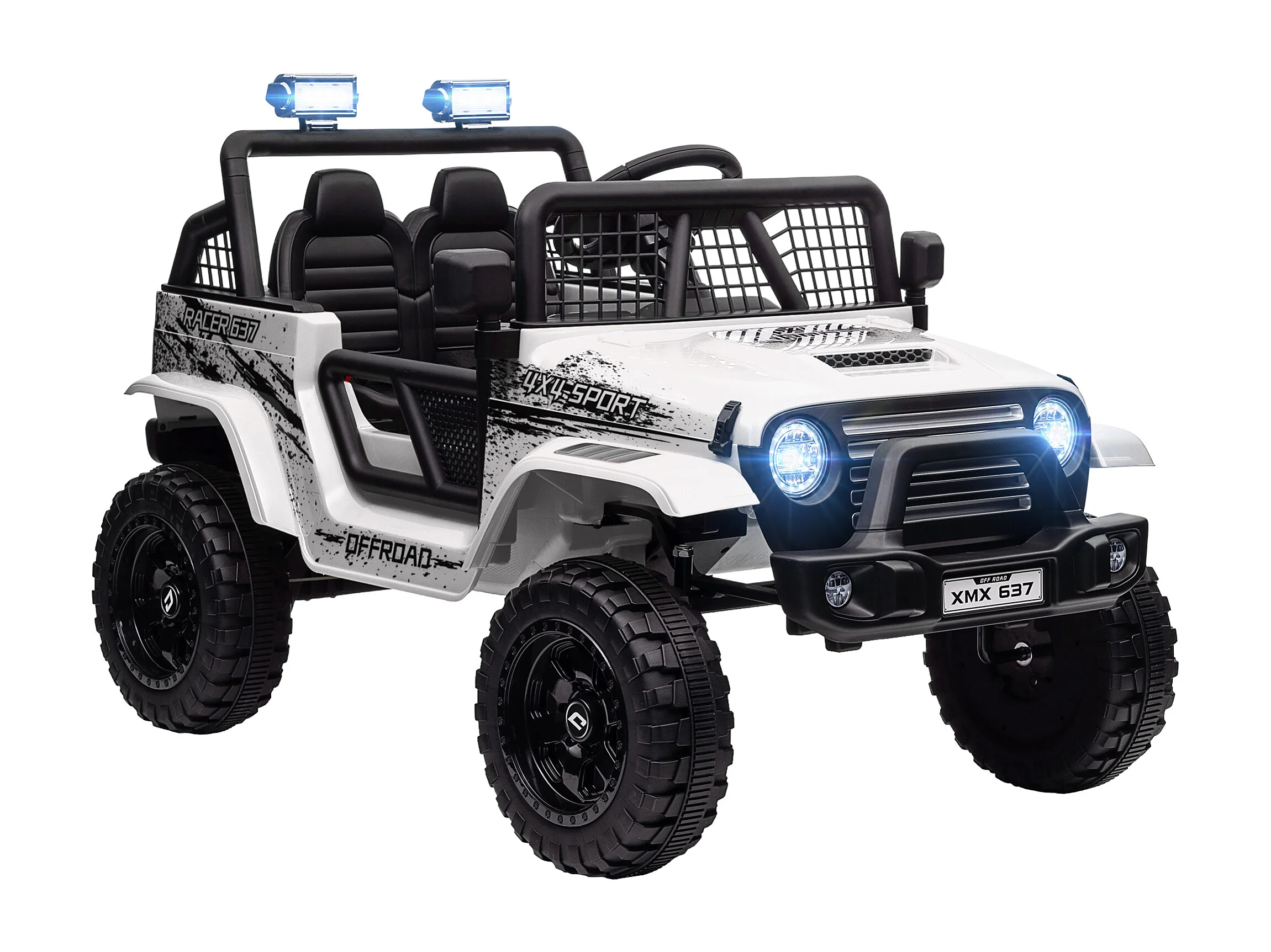 Fuoristrada per bambini con fanali, clacson e cintura bianco