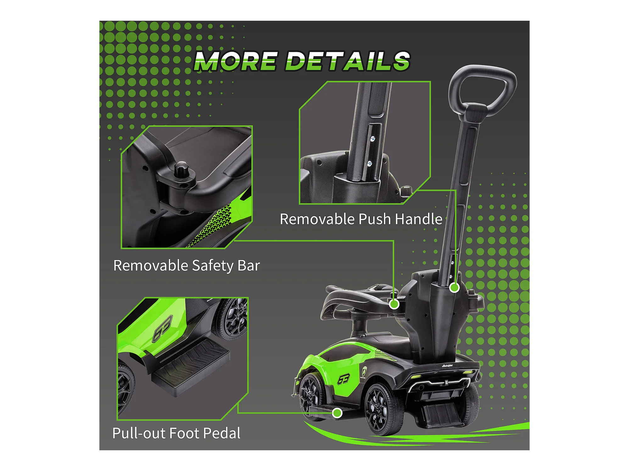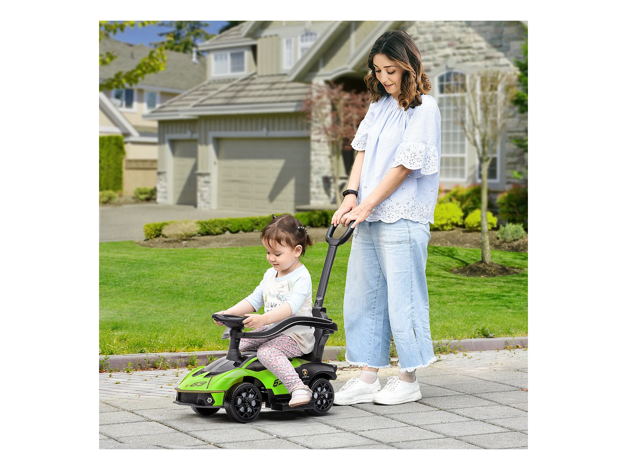 Macchina per bambini a spinta 2 in 1 maniglione e barriera