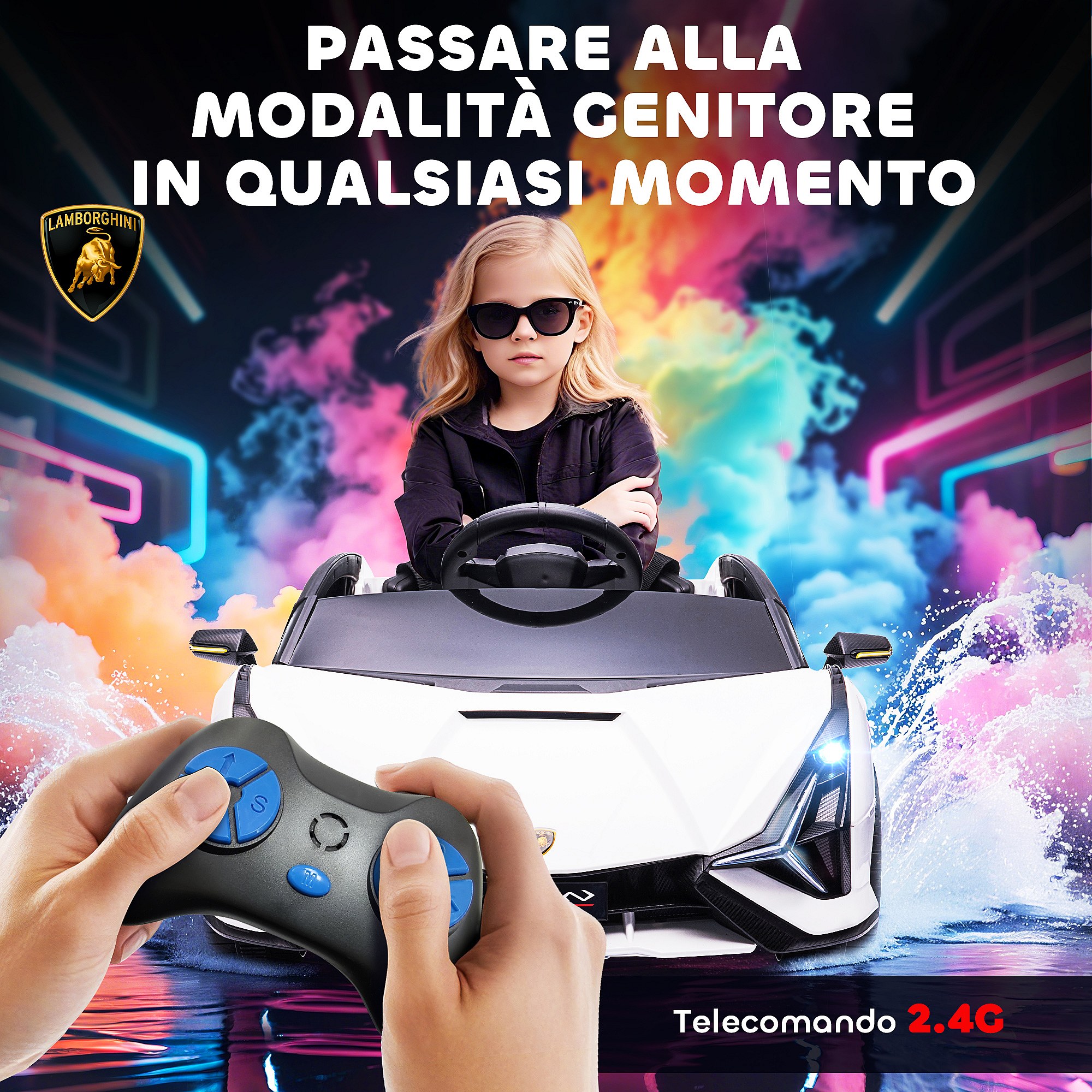 Macchina per bambini lamborghini 12v con telecomando bianco