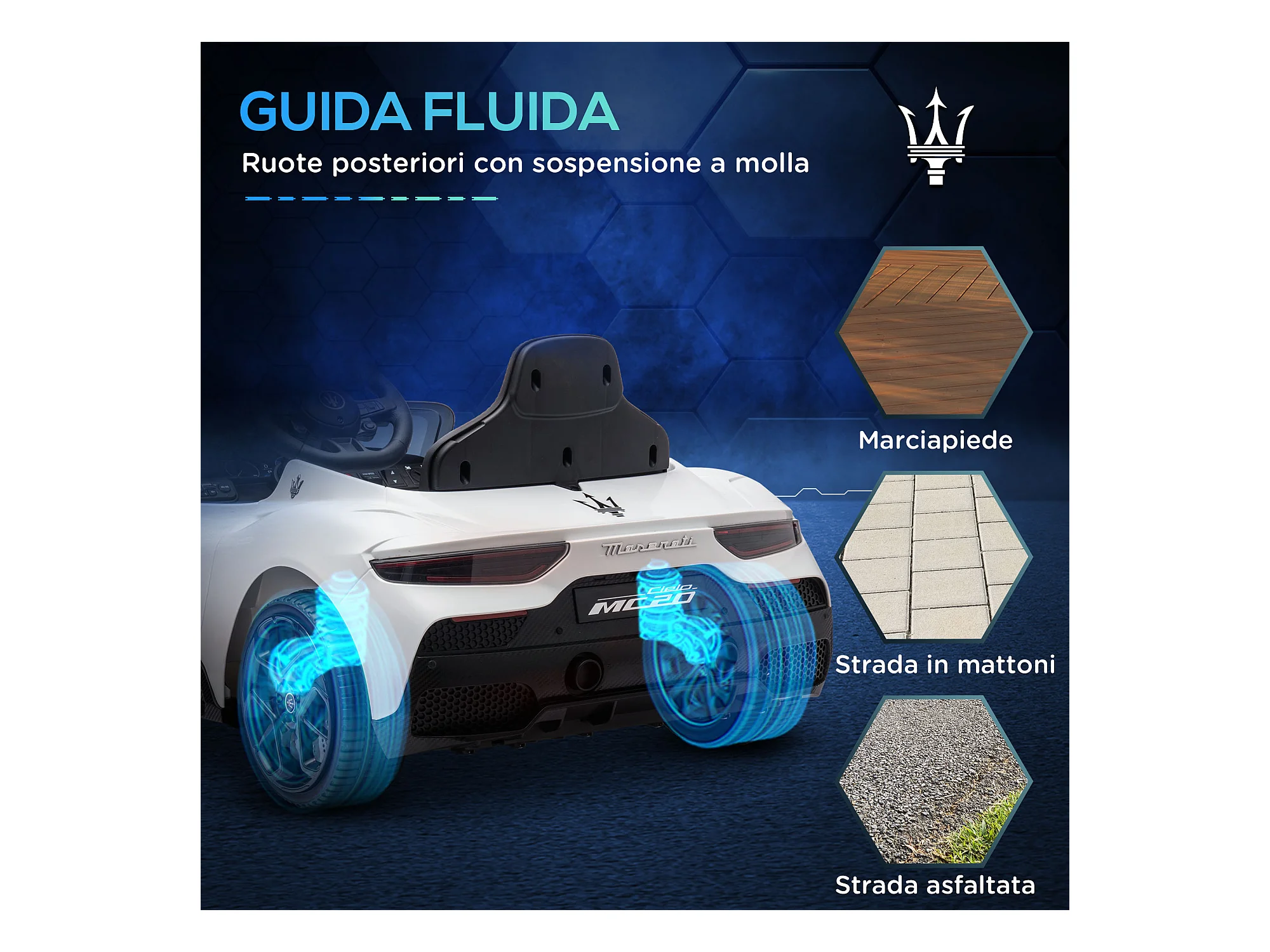 Macchina per bambini maserati mc20 con telecomando e fari bianco