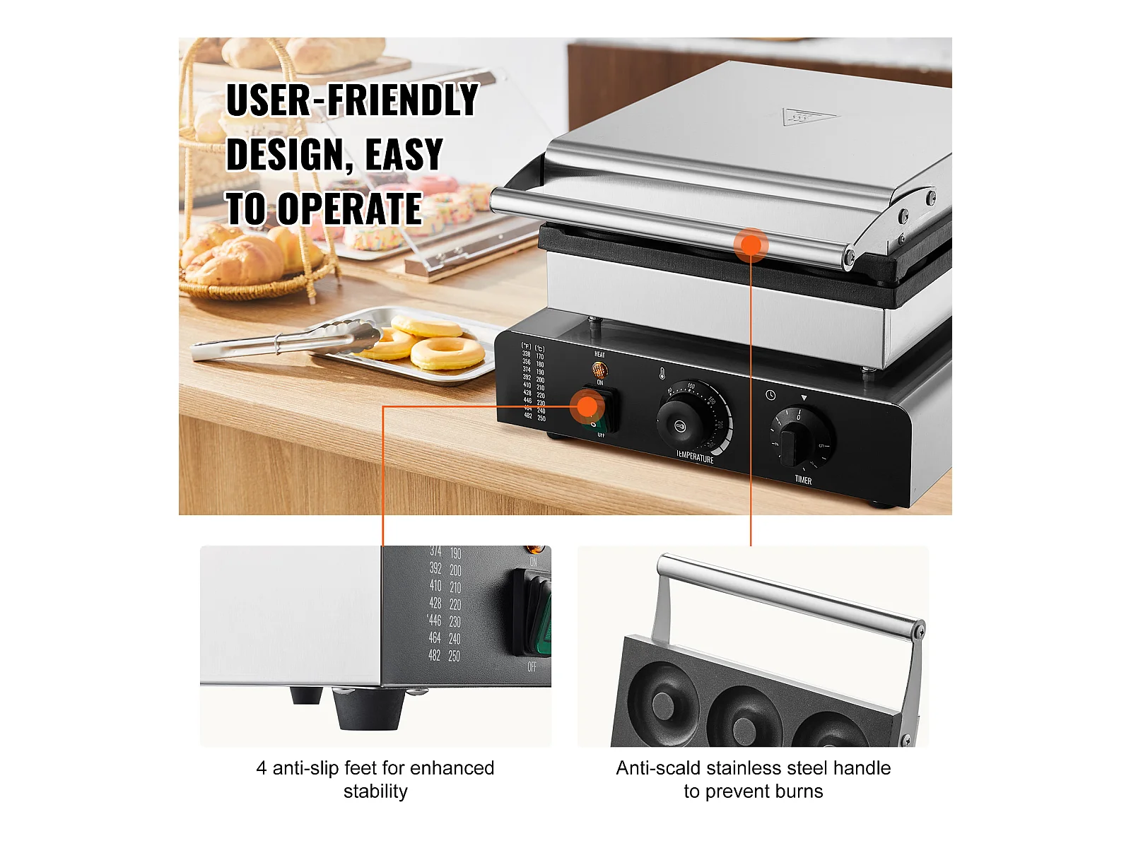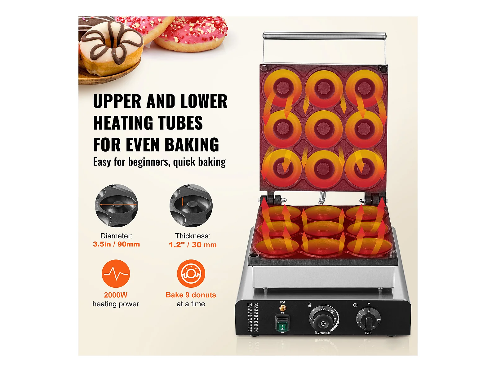 Macchina per Ciambelle Elettrica SucceBuy 9 Pezzi Macchina per Ciambelle Commerciale 2000 W Antiaderente