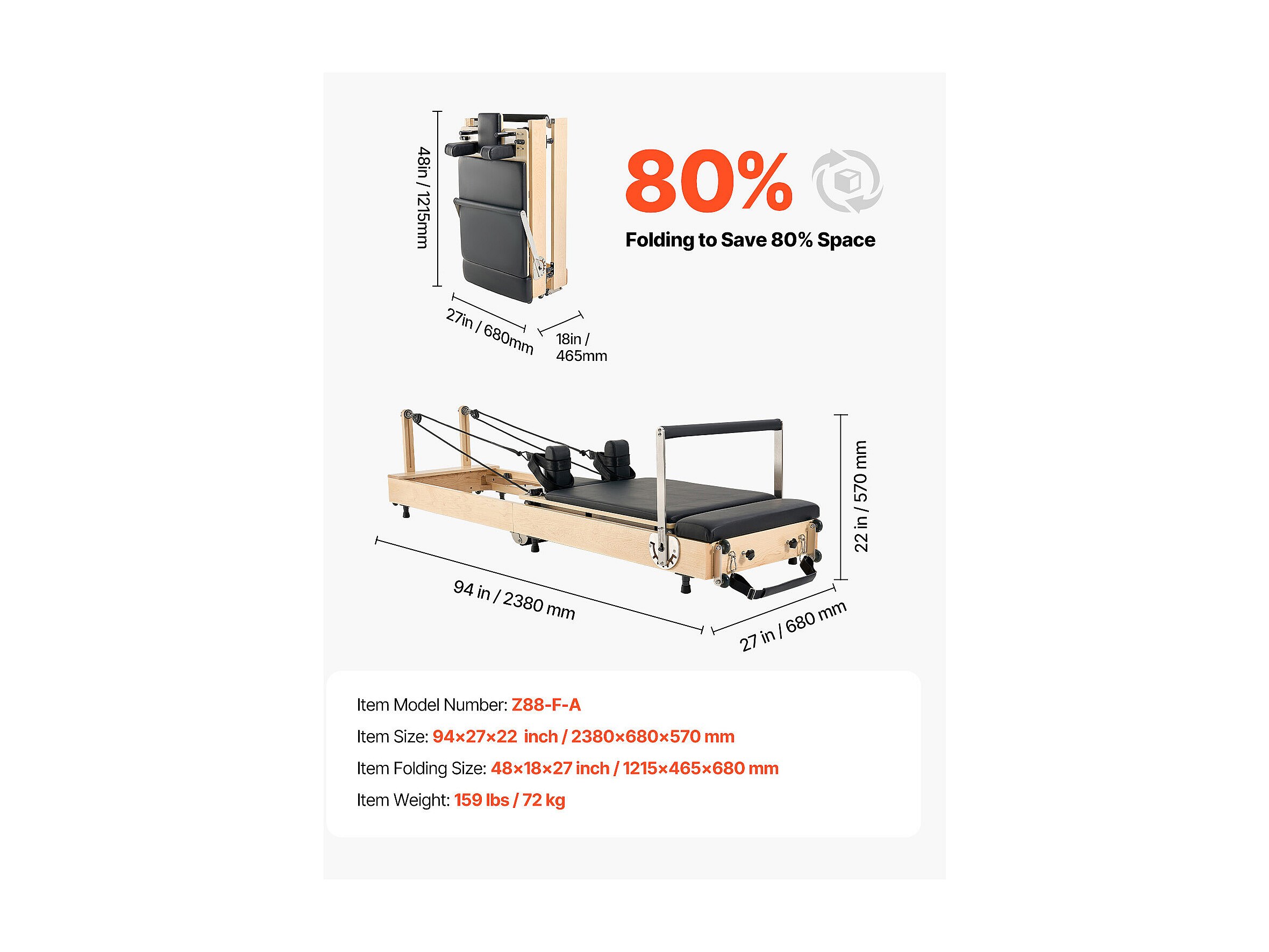 Macchina per Pilates SucceBuy Pilates Reformer Pieghevole in Legno per Palestra Domestica