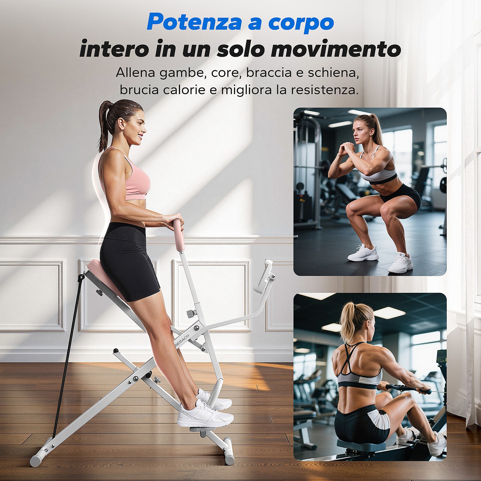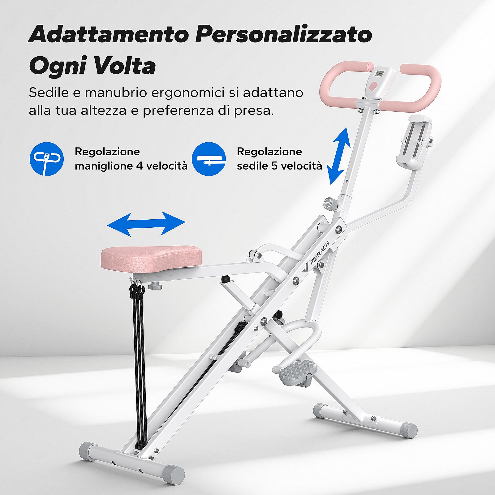 Macchina per Squat e Vogatore MERACH, Resistenza Regolabile, 160 kg, Schermo LCD, Supporto per Telefono, per Addominali/Gambe/Schiena, Bianco