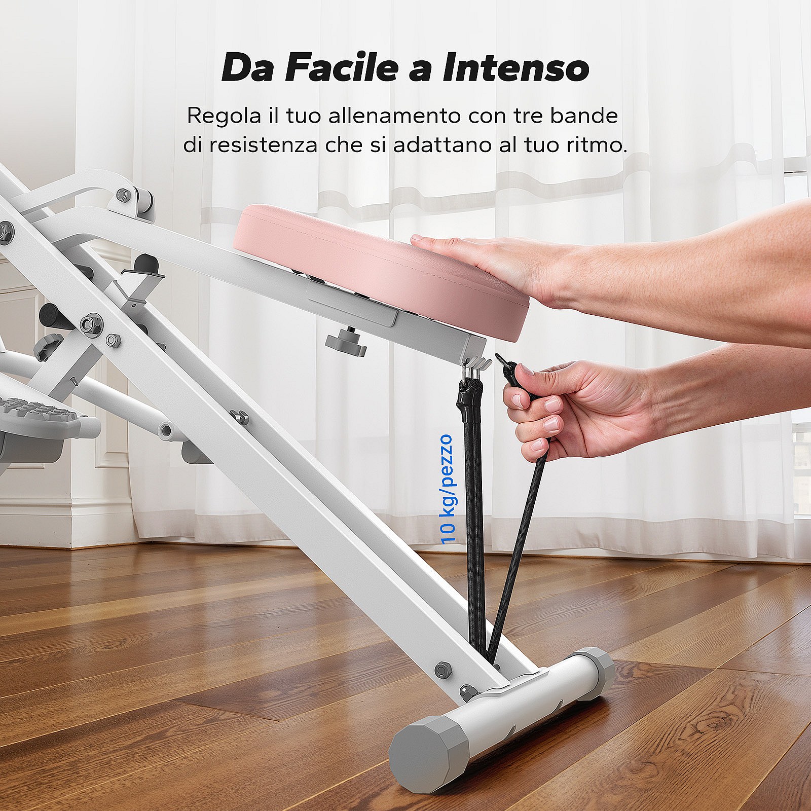 Attrezzo addome & glutei MERACH, 5 livelli, inclinazione regolabile, cuscino a U, manubrio antiscivolo, schermo LCD, carico 200 kg, bianco