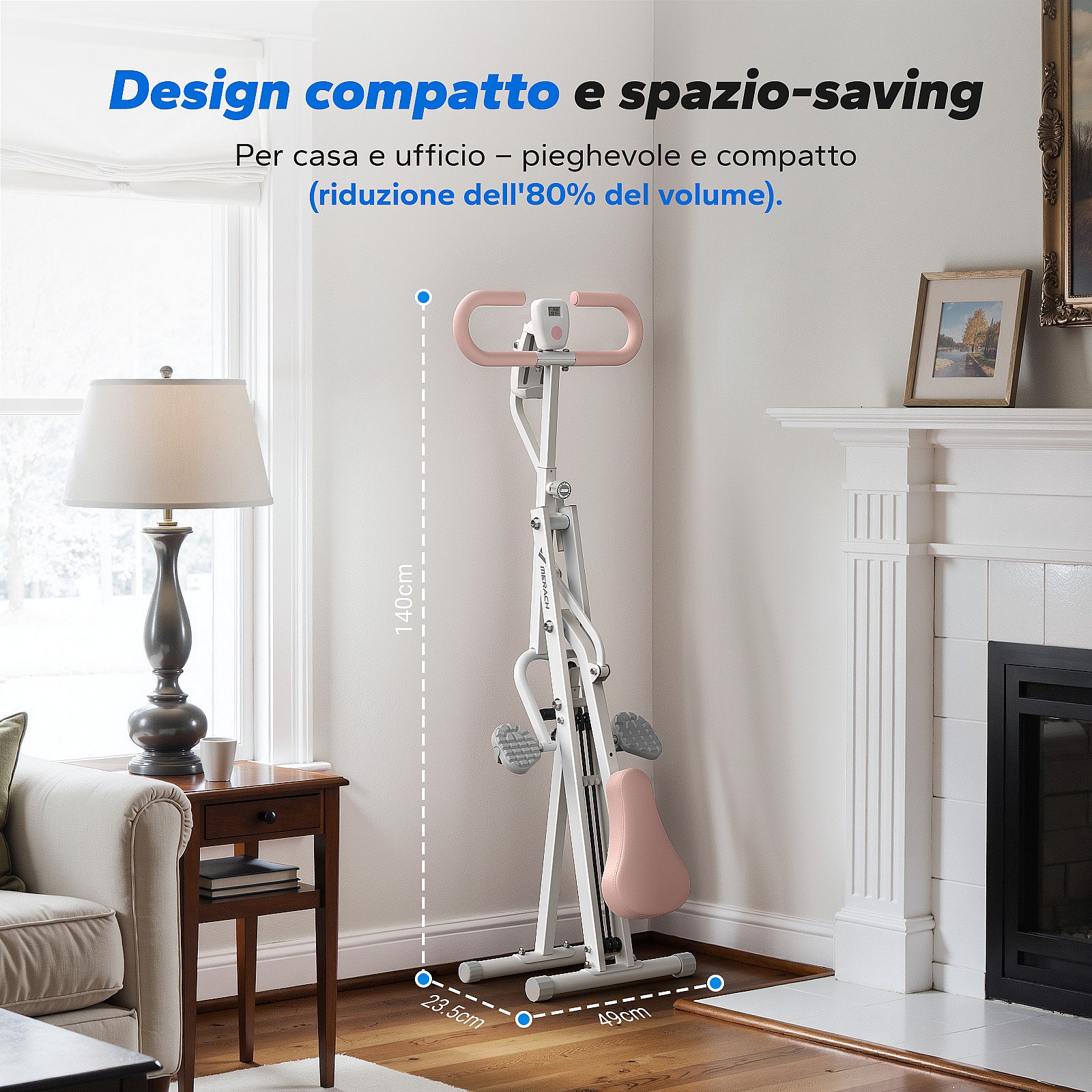 Stepper verticale pieghevole MERACH, 3 livelli di resistenza, manubrio regolabile in altezza e direzione, display LCD, carico max 150 kg, bianco