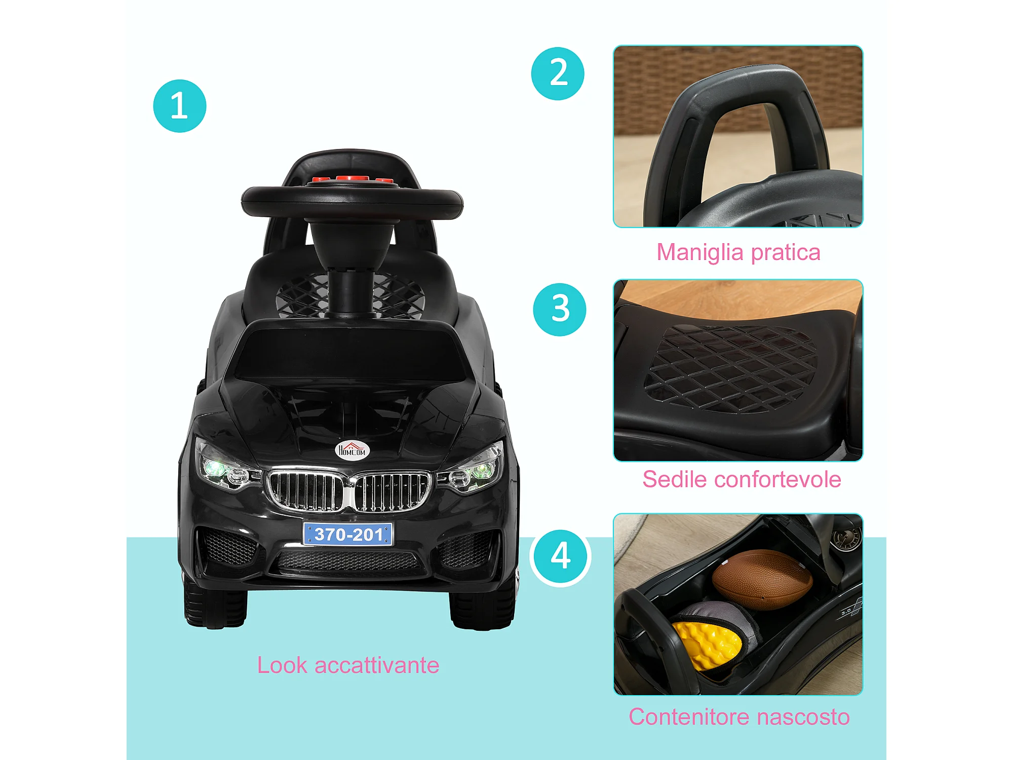 Macchinina per bambini cavalcabile con volante fari e musiche nero