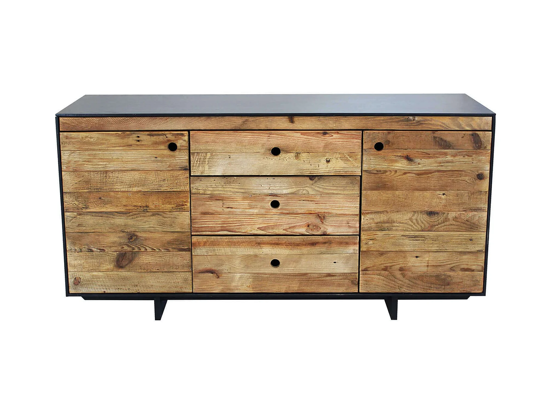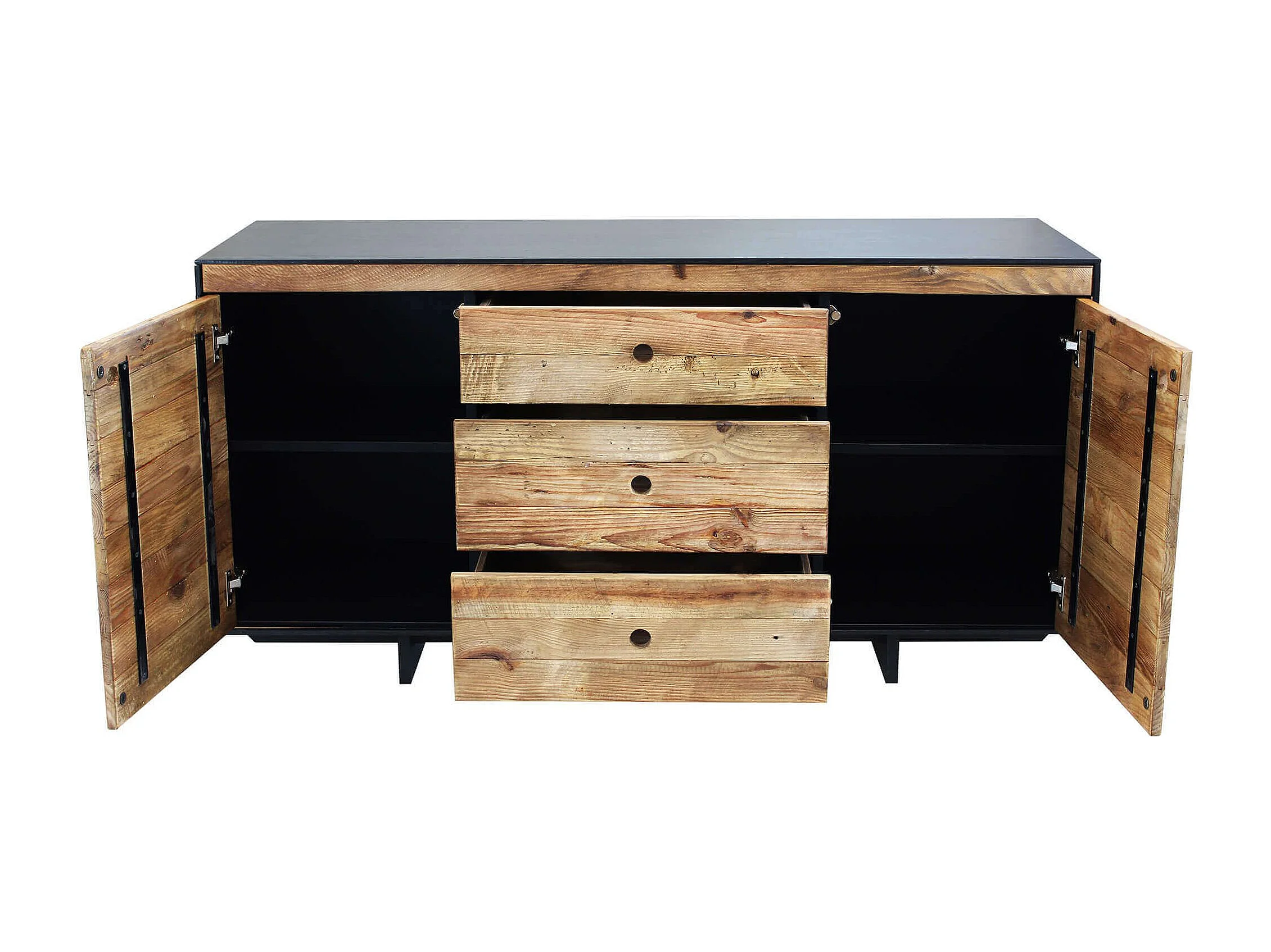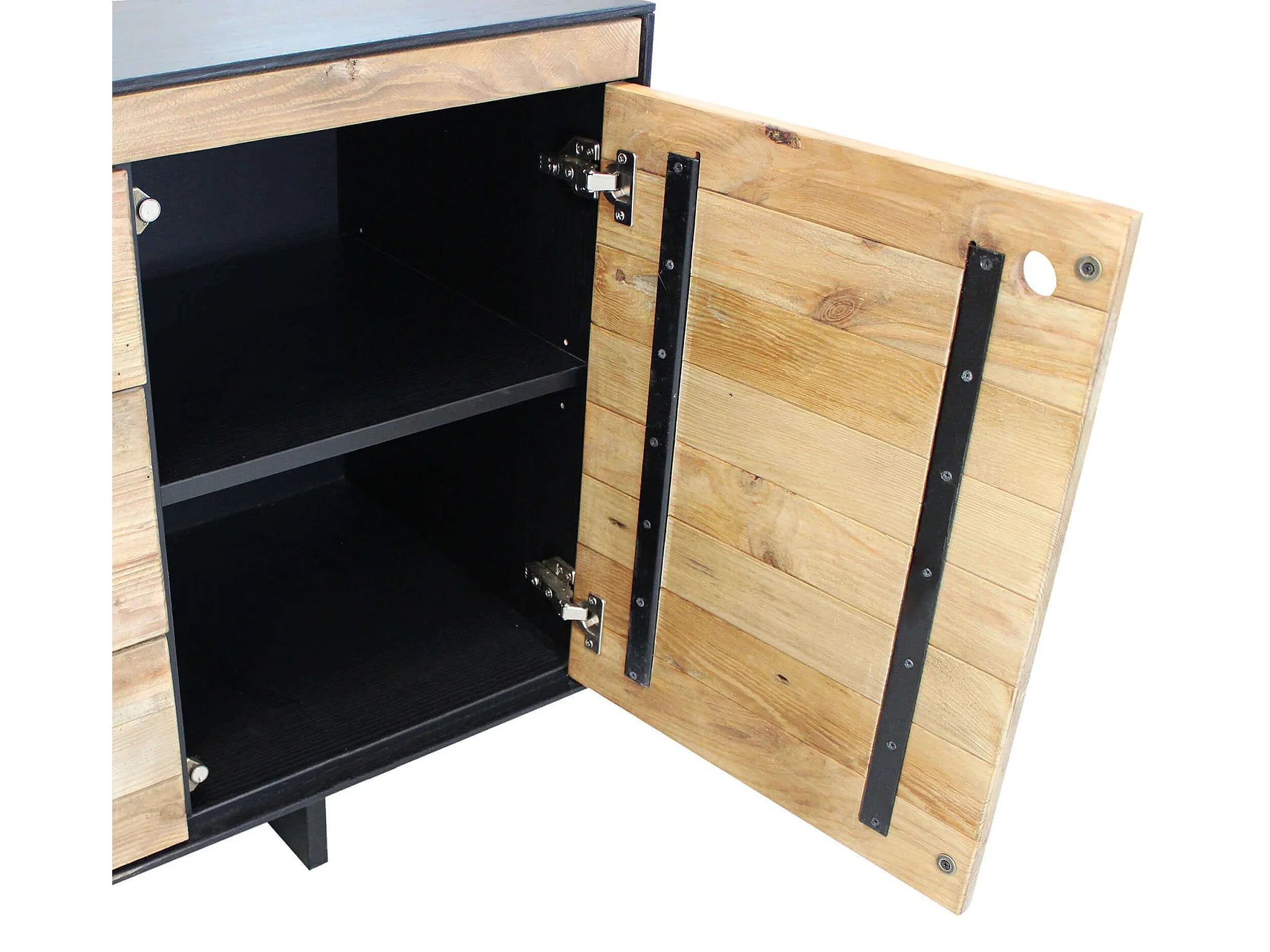 MilaniHome.it - madia 2 ante 3 cassetti di design moderno in legno di pino riciclato massiccio stile moderno vintagedi coloreMarrone