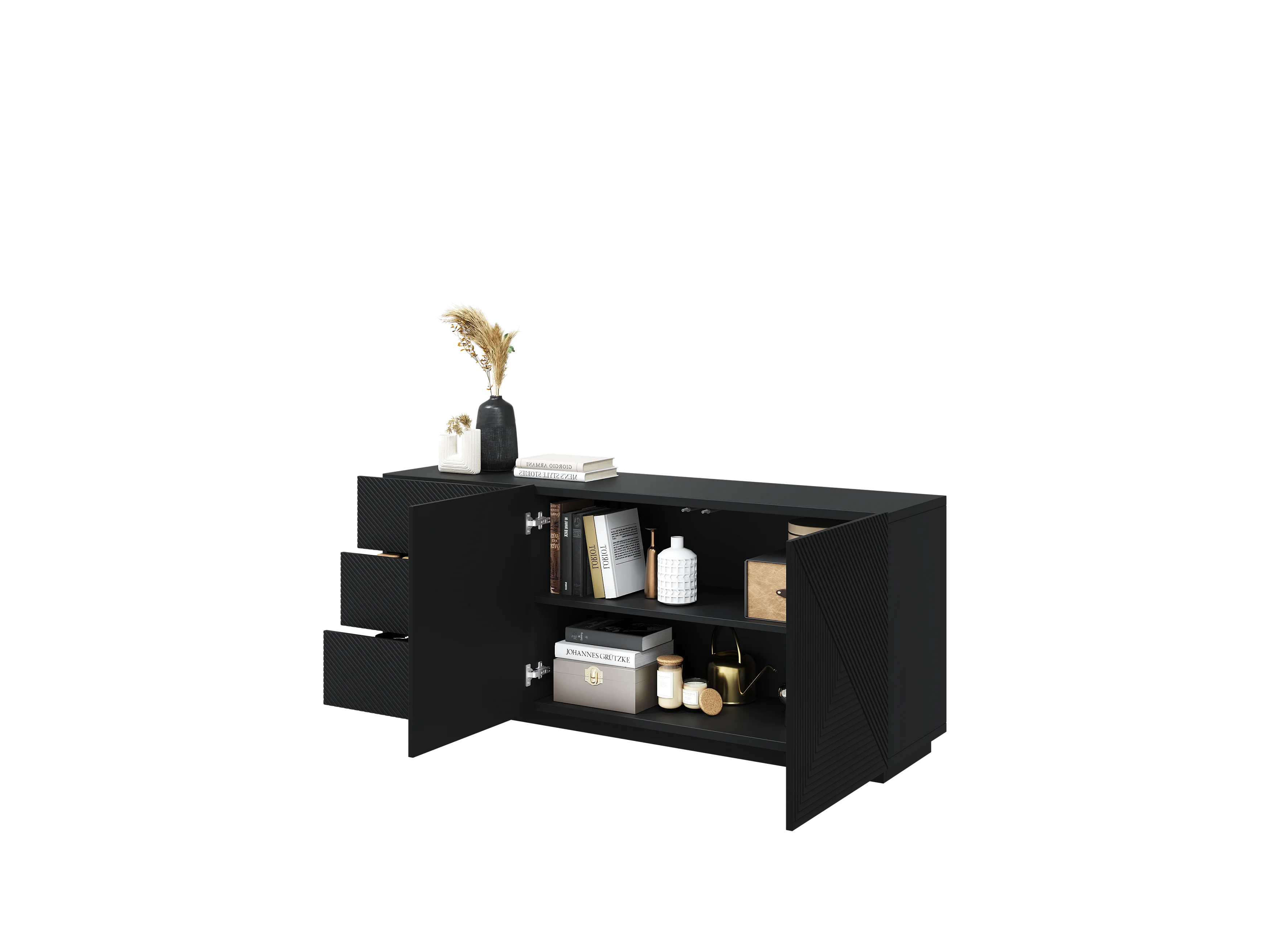Madia 2 ante 3 cassetti nero in legno laminato 167x43 cm
