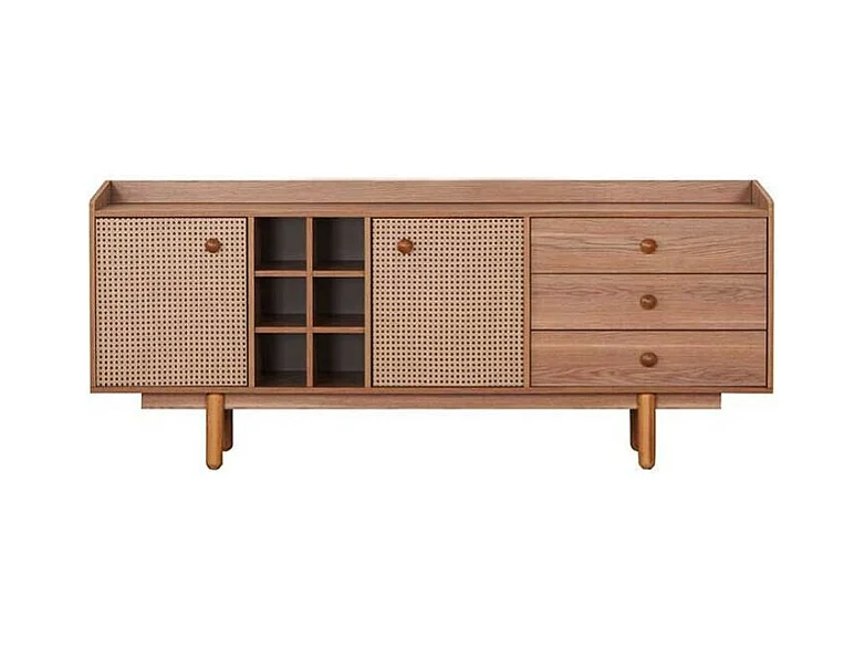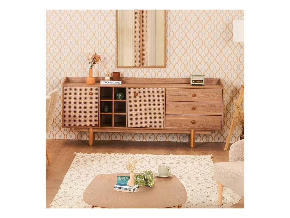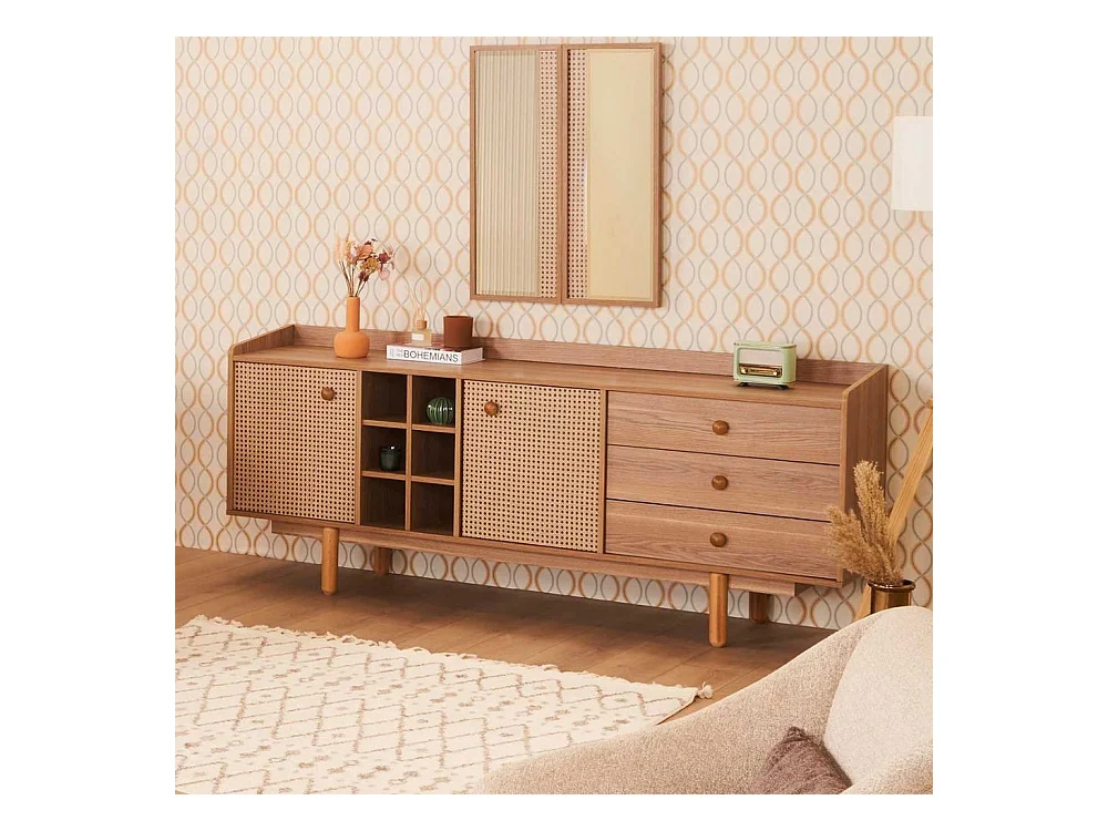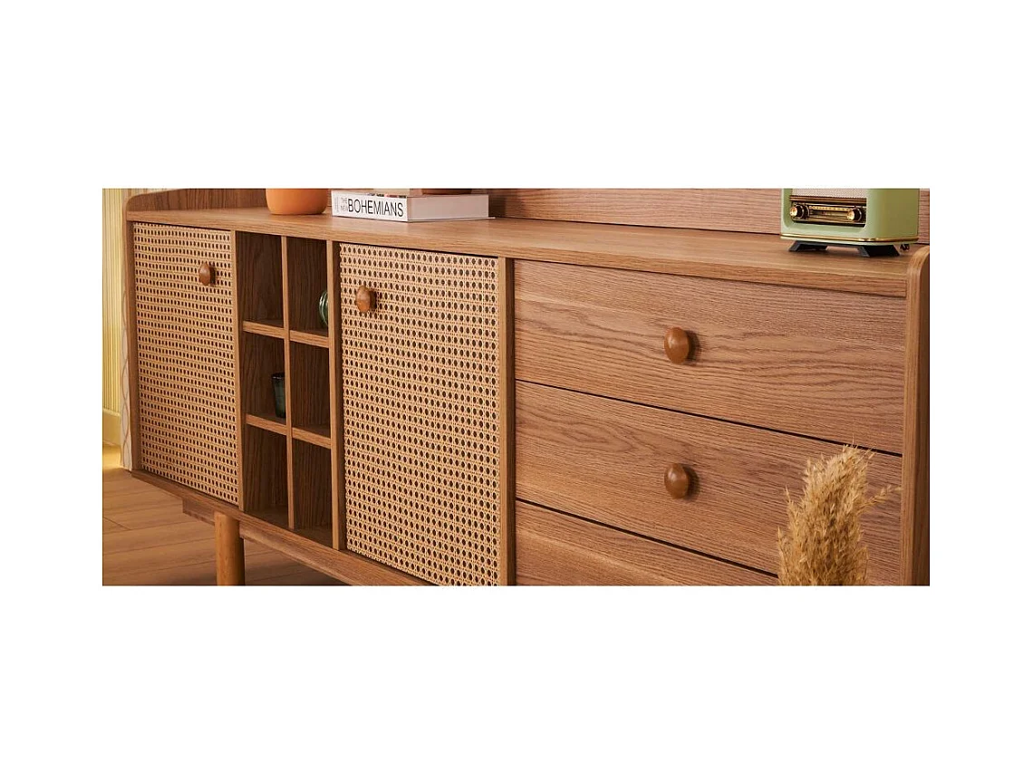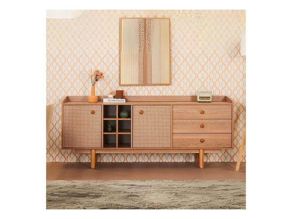 Madia 2 ante effetto vimini con cassetti e vani a giorno finitura rovere miele Natura 206x45x86H