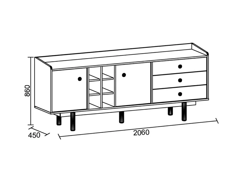 Madia 2 ante e 3 cassetti con vani a giorno rovere miele Dolce 206x45x85H