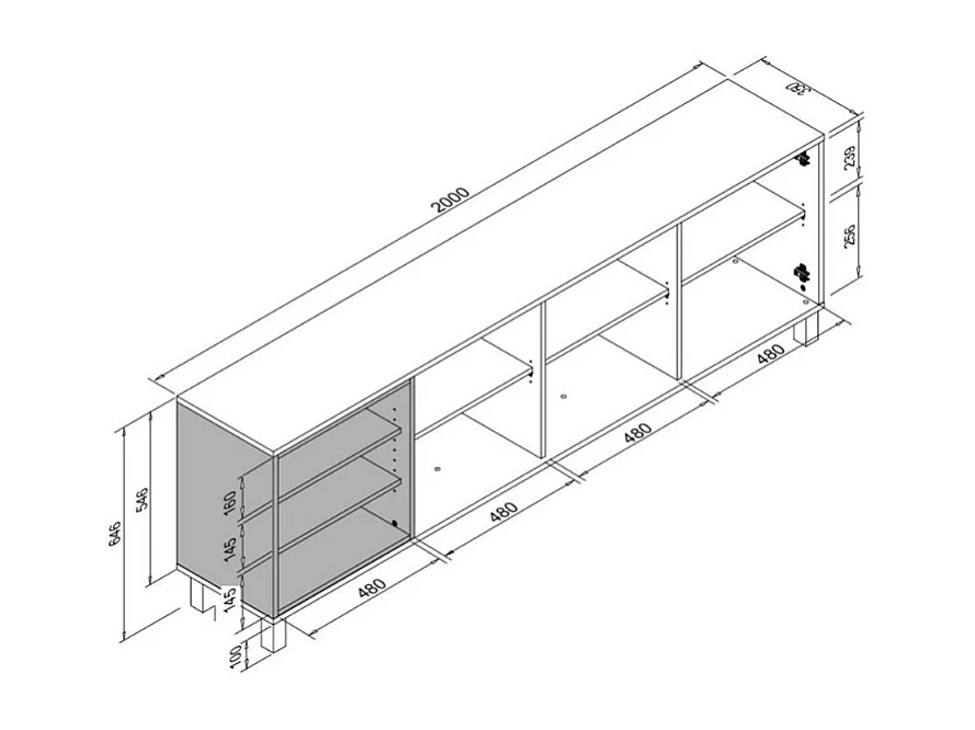 Madia 3 ante 200x35x64,5 Menorca57A colore bianco rovere