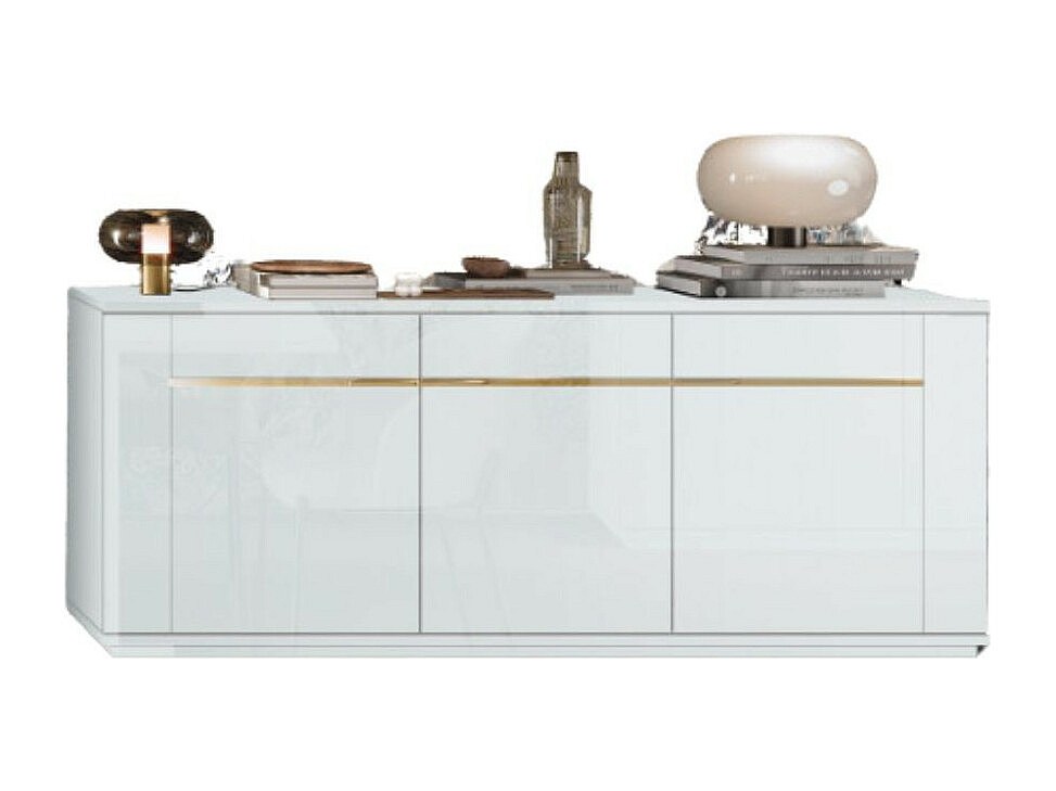 Madia 3 ante bianco lucido laccato con particolari oro Alce 205x49x83h