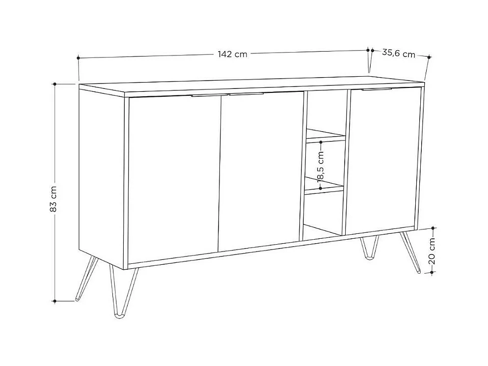Madia 3 ante Clara 142x35,5x83h colore bianco