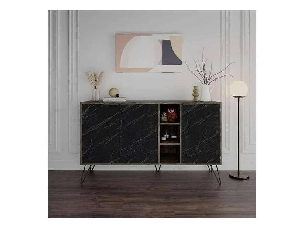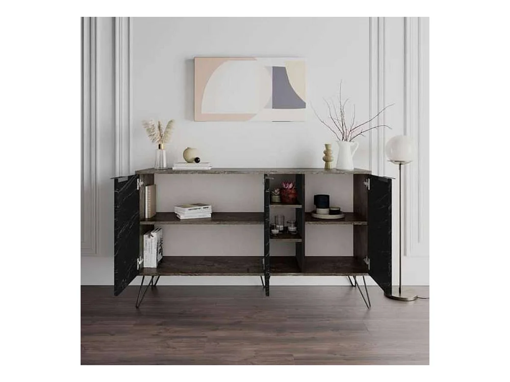 Madia 3 ante effetto marmo nero Clara Bender 142x35,5x83h colore dark coffe