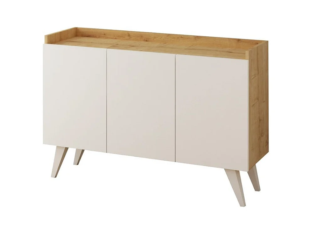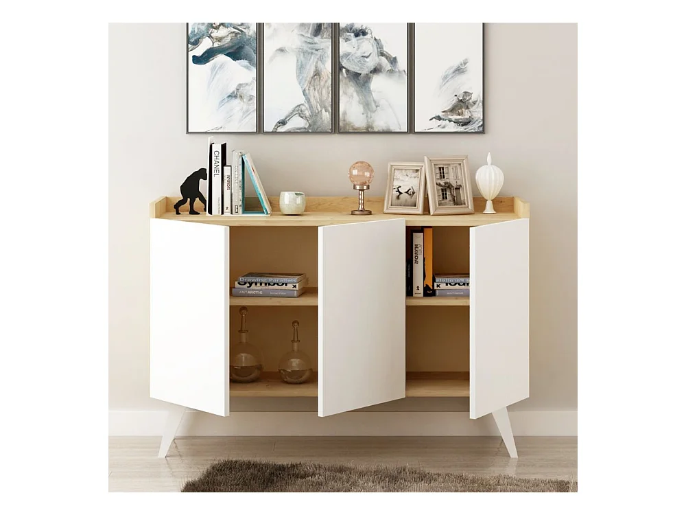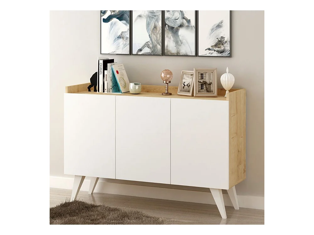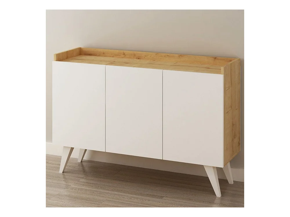 Dmora - Credenza Angstrom, 108x40h126 cm, Bianco e Rovere