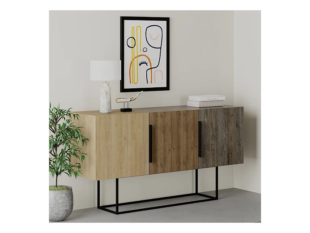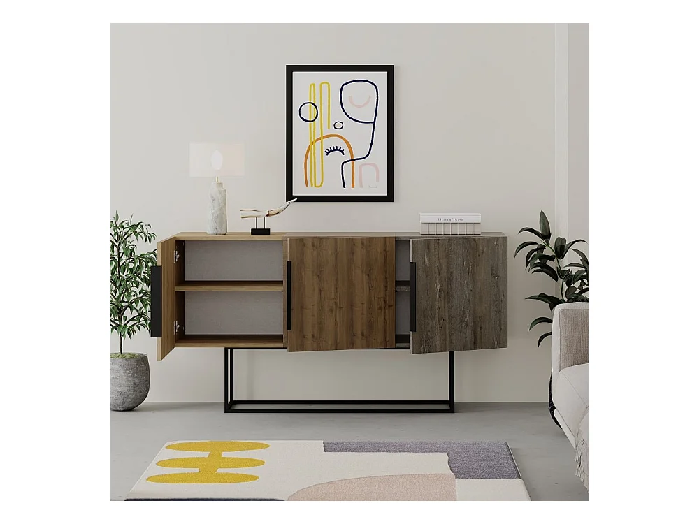 Madia Nordik 4 ante e 1 cassetto in noce e bianco spatolato 170x39.6x85H – Stile e funzionalità