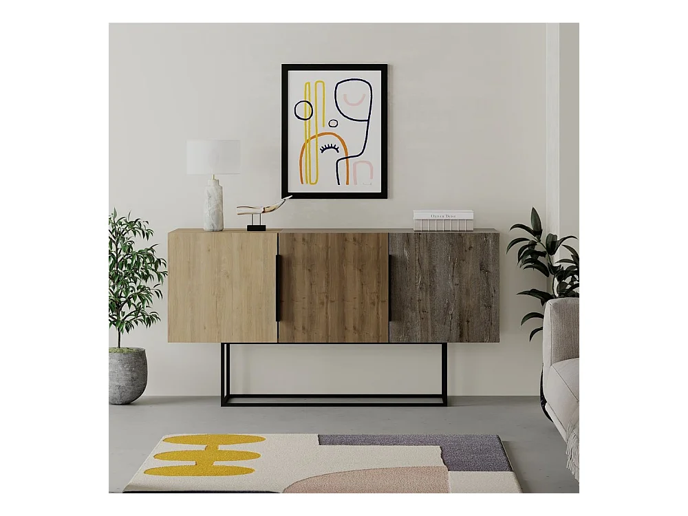 Credenza 2 ante e 4 cassetti rovere e antracite Berno4 120,2x32,5x85,3h