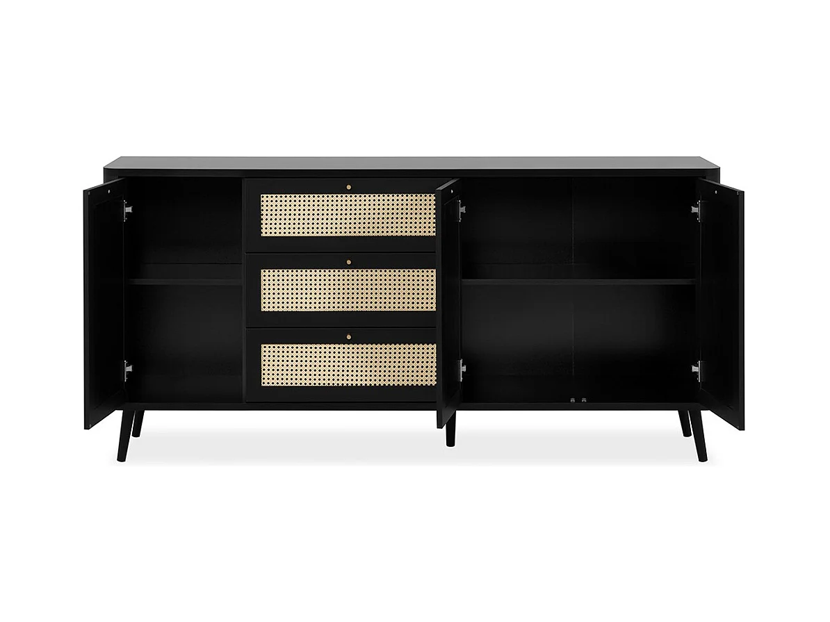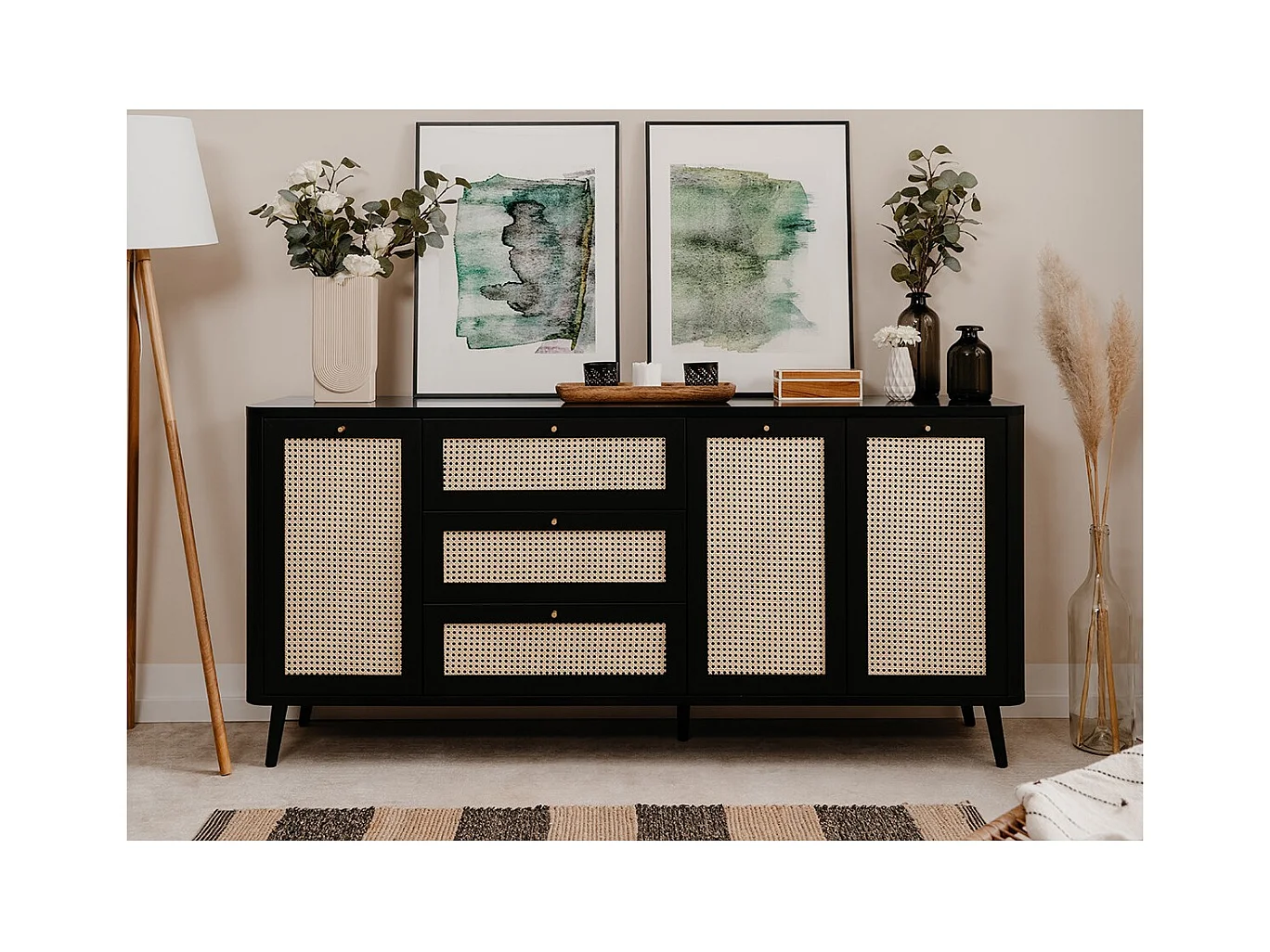 Madia 3 cassetti e 3 ante effetto rafia KUTA51A colore nero